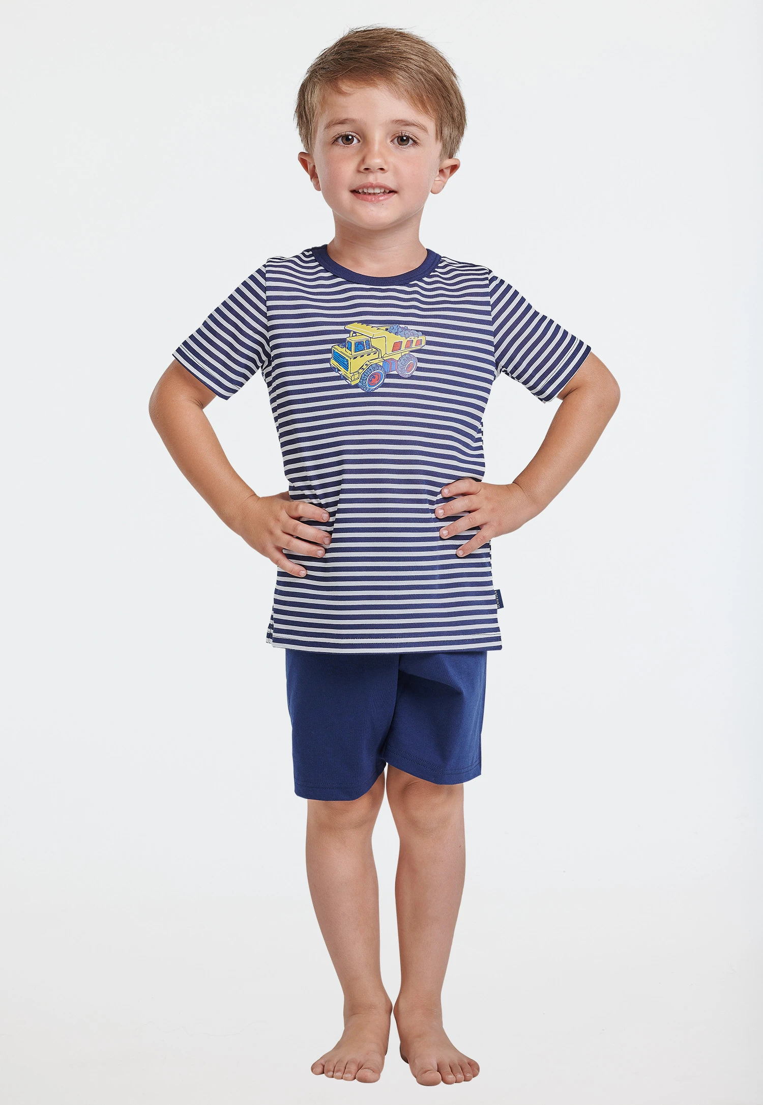 The short pajamas will make the eyes of every little boy light up! The striped top looks great even under the duvet and impresses with the extra large motif on the chest: A cool construction vehicle at work will elicit enthusiasm. Little rascals will feel good in the short, dark blue pajama bottoms with a comfortable waistband. 100% organic cotton caresses your child’s delicate skin and is guaranteed to provide relaxing nights in best SCHIESSER quality!