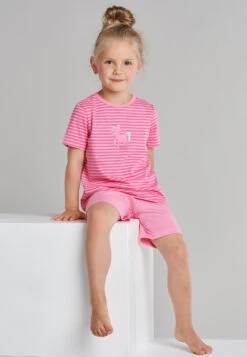 Dream on, little princesses! These short pajamas are simply adorable! Little dream ballerinas can feel completely at ease in the wonderfully soft single jersey made of 100% soft organic cotton. Pretty stripes in bright pink and featuring a cute horse on the chest, this two-piece set is simply adorable. The comfortable pajama pants sit perfectly on the body thanks to the extra soft waistband and guarantee relaxing nights – in the best SCHIESSER quality, of course!
