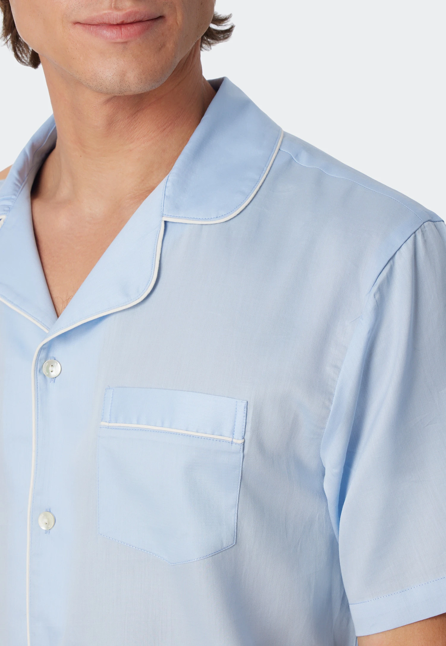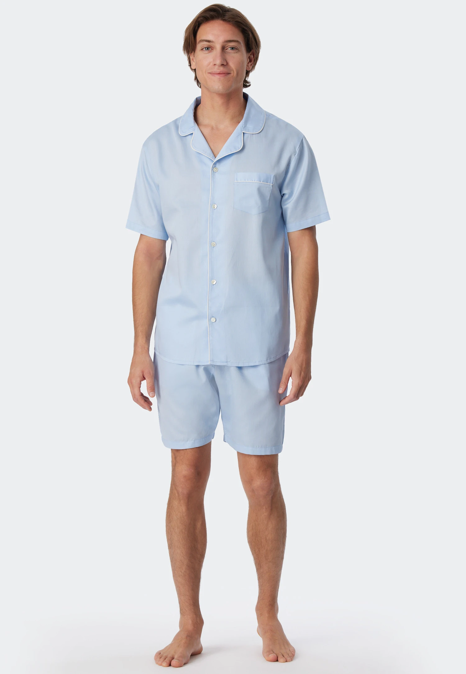 - short, light blue pajamas for men