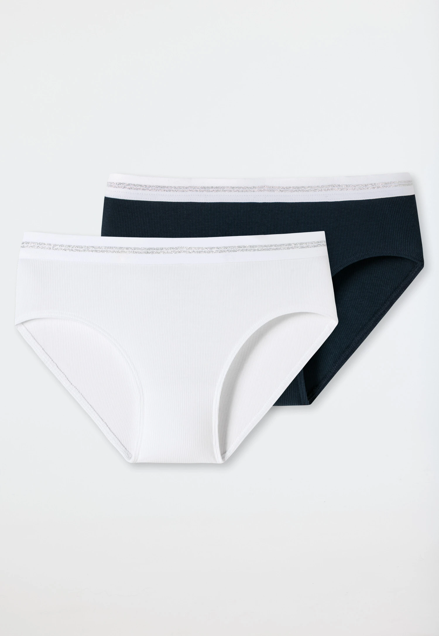 These cool girls’ panties come in a practical double pack! Classic color combinations are the reason behind their simple look. A real highlight, however, is the decorative waistband with glittering Lurex contrasting stripes. Last but not least, the stretchy pilling-free double rib in a comfortable fit is a sure winner. A trendy underwear duo in the best SCHIESSER quality.