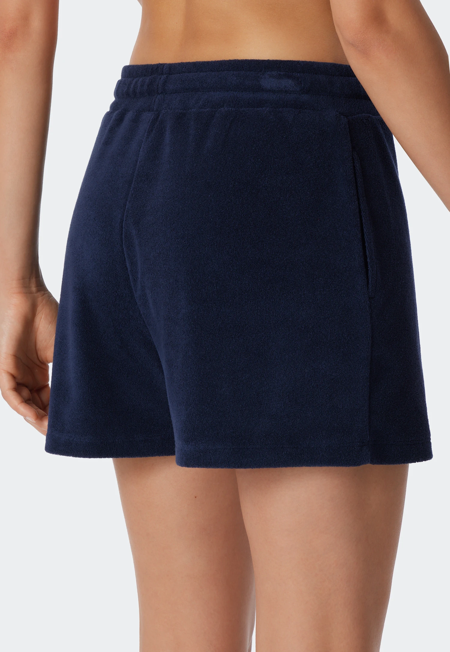 Fancy a relaxing day at the beach? We have the ideal companion for that! These dark blue shorts for women are not only wonderfully retro, but also incredibly comfortable. With their stylish, slightly wider cut, they simply look good. This is complemented by the elastic waistband with a comfortable drawstring and the side pockets. Soft, non-slip terry cloth made from sustainable organic cotton perfects the look. Slip them on and enjoy the summer – in the best SCHIESSER quality, of course!