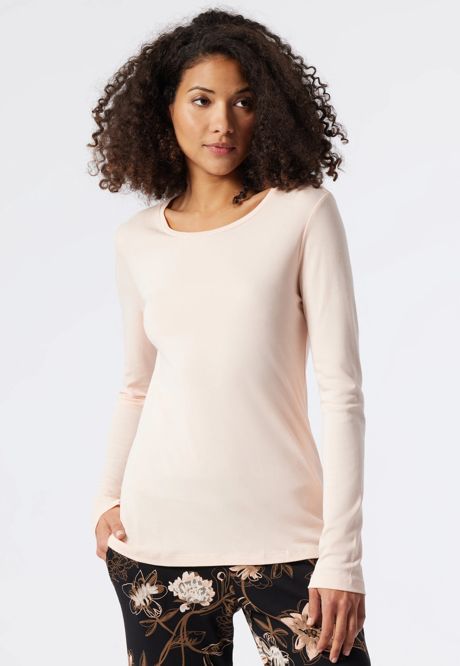 So soft, so cuddly: this long-sleeved shirt for women is a basic that should not be missing in any wardrobe! With its modern silhouette, it caresses the body and offers plenty of freedom of movement. Soft interlock made of cotton and natural, breathable modal ensures an incredible feel-good sensation. The material feels wonderful even after many washes! Simply pair it with the right pants and enjoy your relaxation time – in the best SCHIESSER quality!