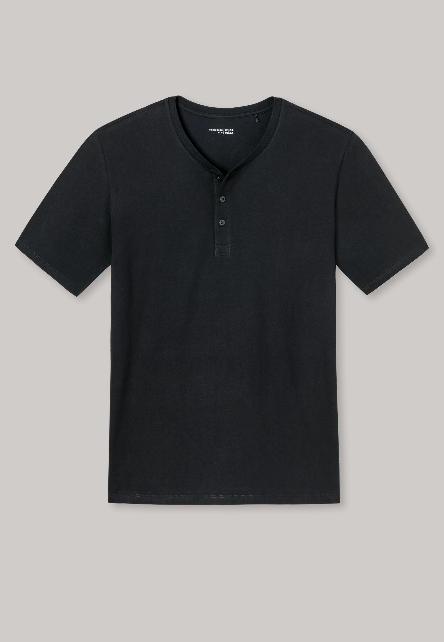 This black men’s short-sleeved shirt from the popular Mix + Relax line radiates pure coolness! The serafino collar with button placket gives the T-shirt its typical Henley character. Thanks to soft single jersey made of 100% cotton ensures high wearing comfort. Just the thing for relaxed days and nights – in the best SCHIESSER quality, of course!