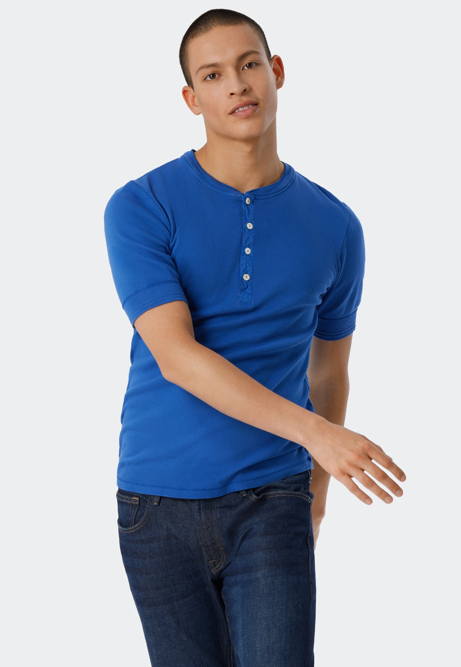 I’m Karl-Heinz. You already know me; I’m the cult classic from 1923, embodying the best craftsmanship and the finest quality in a contemporary look. With me you’re getting a Henley made of piece-dyed fine rib, made of 100% super-combed organic cotton. Accents include my blue stripes, mother-of-pearl buttons and the traditional flat edges along the arm ends. You’ll see: I’m not just any shirt, I’m the original of originals.