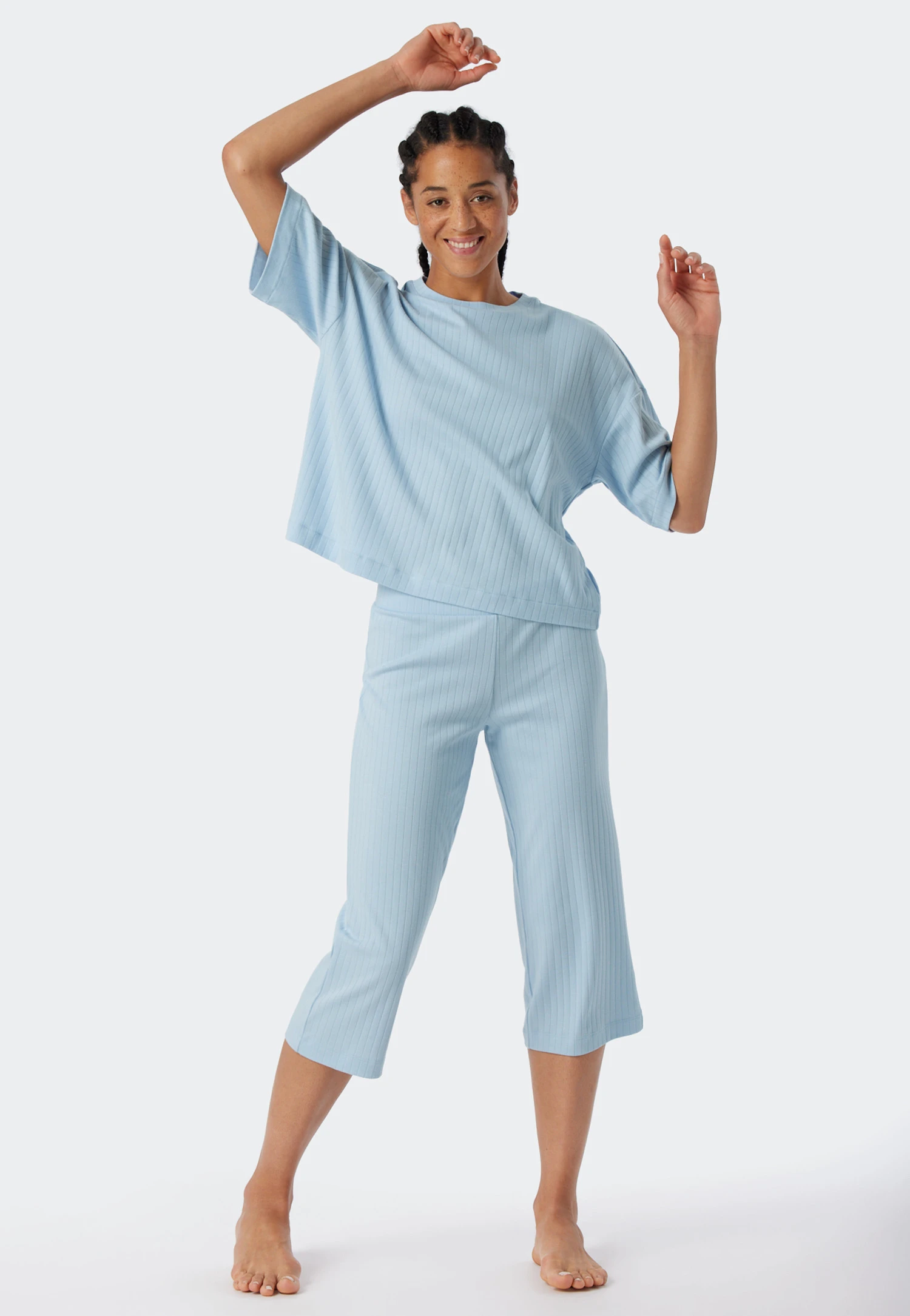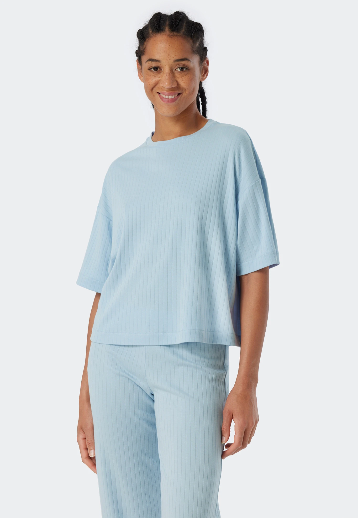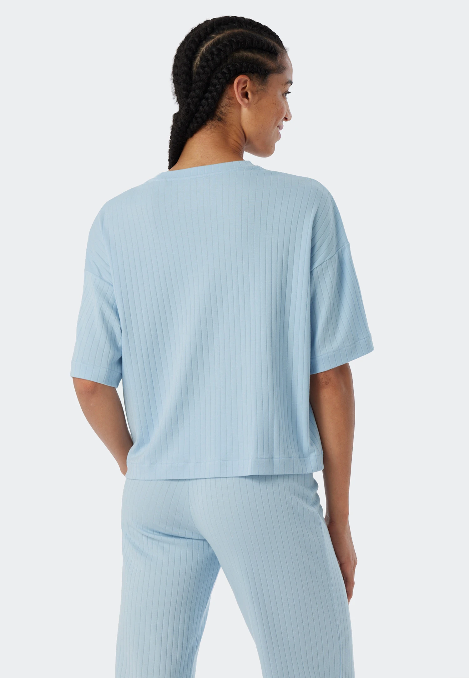 So casual, so comfortable: this short-sleeved shirt for women makes you look great! The trendy ribbed look and wide, oversized shape with oversized shoulders are real eye-catchers. The softly edged crew neck ensures comfort. The highlight is the material: soft interlock made of organic cotton and breathable modal feels good and is also sustainable. The best SCHIESSER quality for those who like to mix and match to their heart’s content!