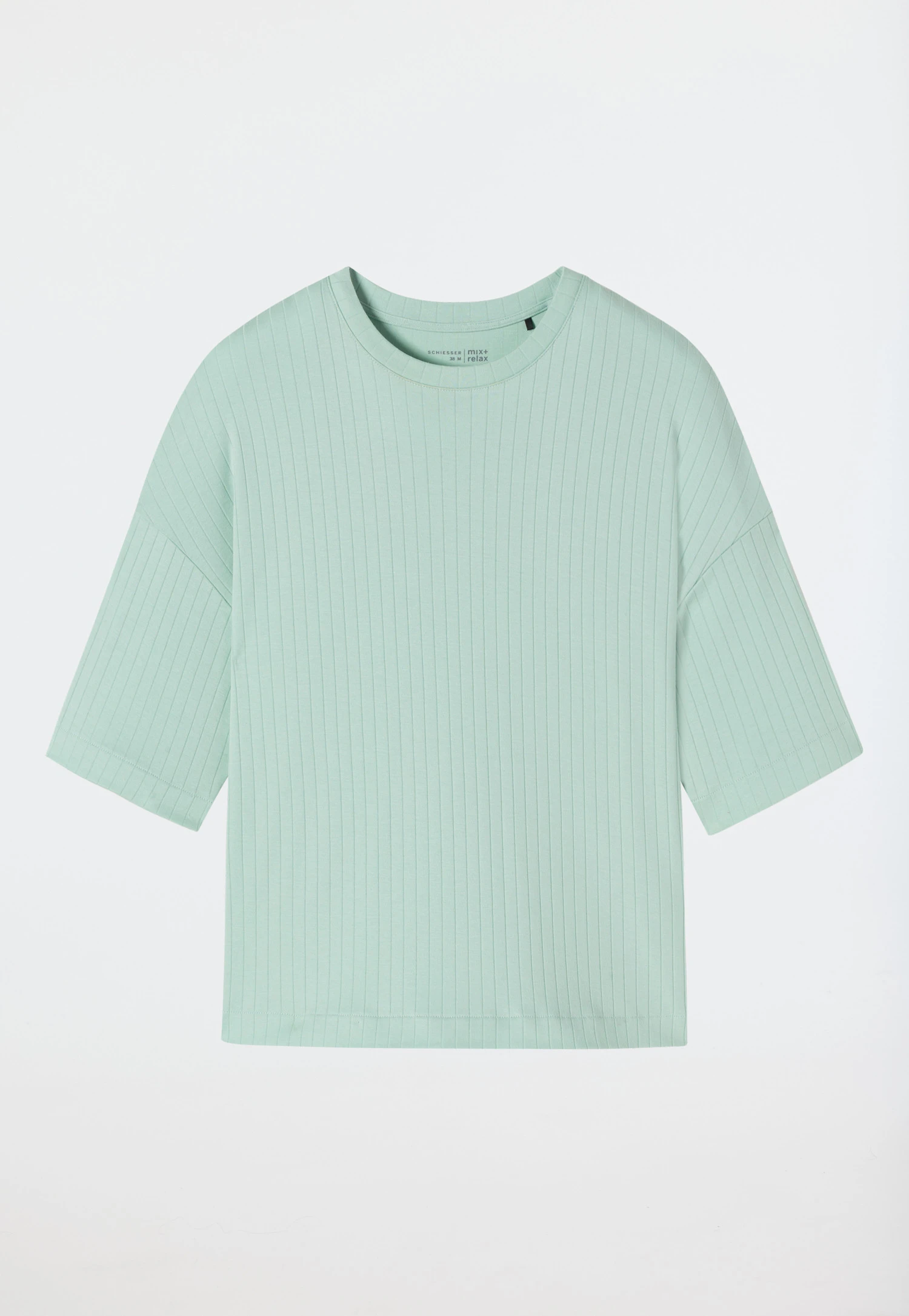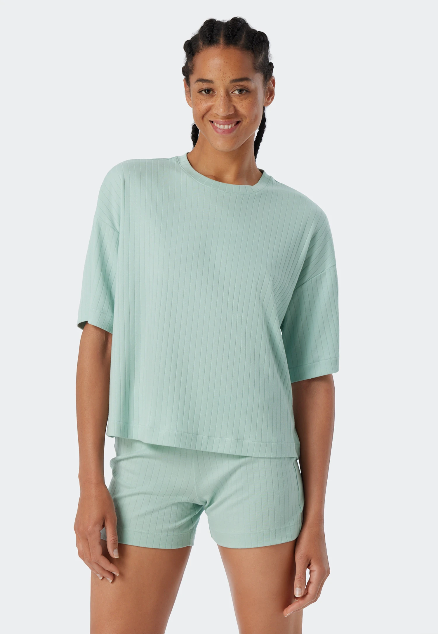 So casual, so comfortable: this short-sleeved shirt for women makes you look great! The trendy ribbed look and wide, oversized shape with oversized shoulders are real eye-catchers. The softly edged crew neck ensures comfort. The highlight is the material: soft interlock made of organic cotton and breathable modal feels good and is also sustainable. The best SCHIESSER quality for those who like to mix and match to their heart’s content!