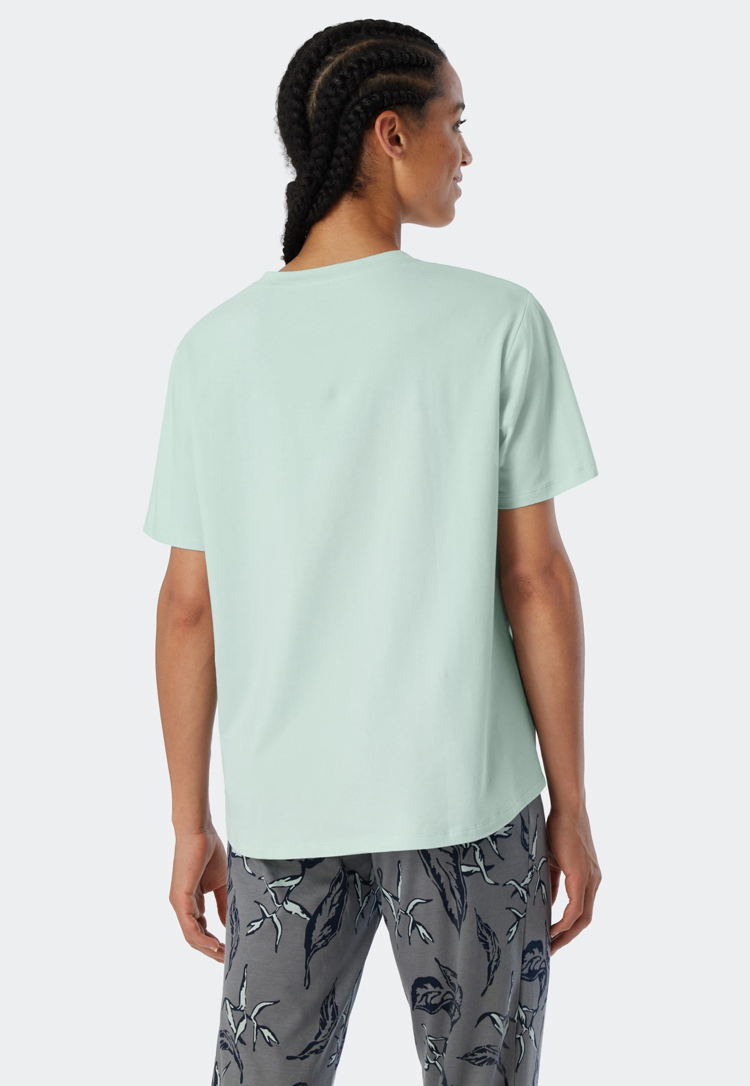 This women’s T-shirt simply goes with anything! The popular Mix+Relax line lives up to its name once again with this short-sleeved T-shirt whose uncomplicated, casual cut lets it pair beautifully with so many outfits. Soft, stretchy single jersey made from organic cotton and a touch of spandex ensures a high degree of wearing comfort. It won’t matter if you’re relaxing on the couch or sleeping, this T-shirt will spoil you at all times with the very best SCHIESSER quality!