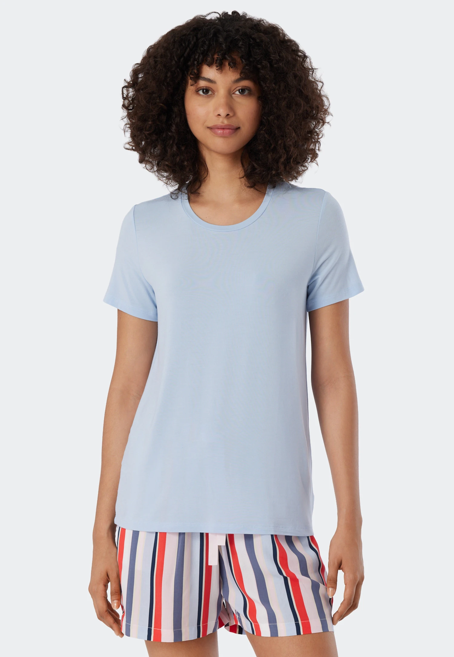 This women’s t-shirt is much more than just a basic! With its casual style, it dances around the body and sits wonderfully comfortably with its round neckline. Stretchy jersey made of soft modal ensures pure well-being. The natural material is wonderfully flowy, breathable and easy to care for. Combine this favorite with the matching pants from the Mix + Relax line and enjoy relaxing in the best SCHIESSER quality!