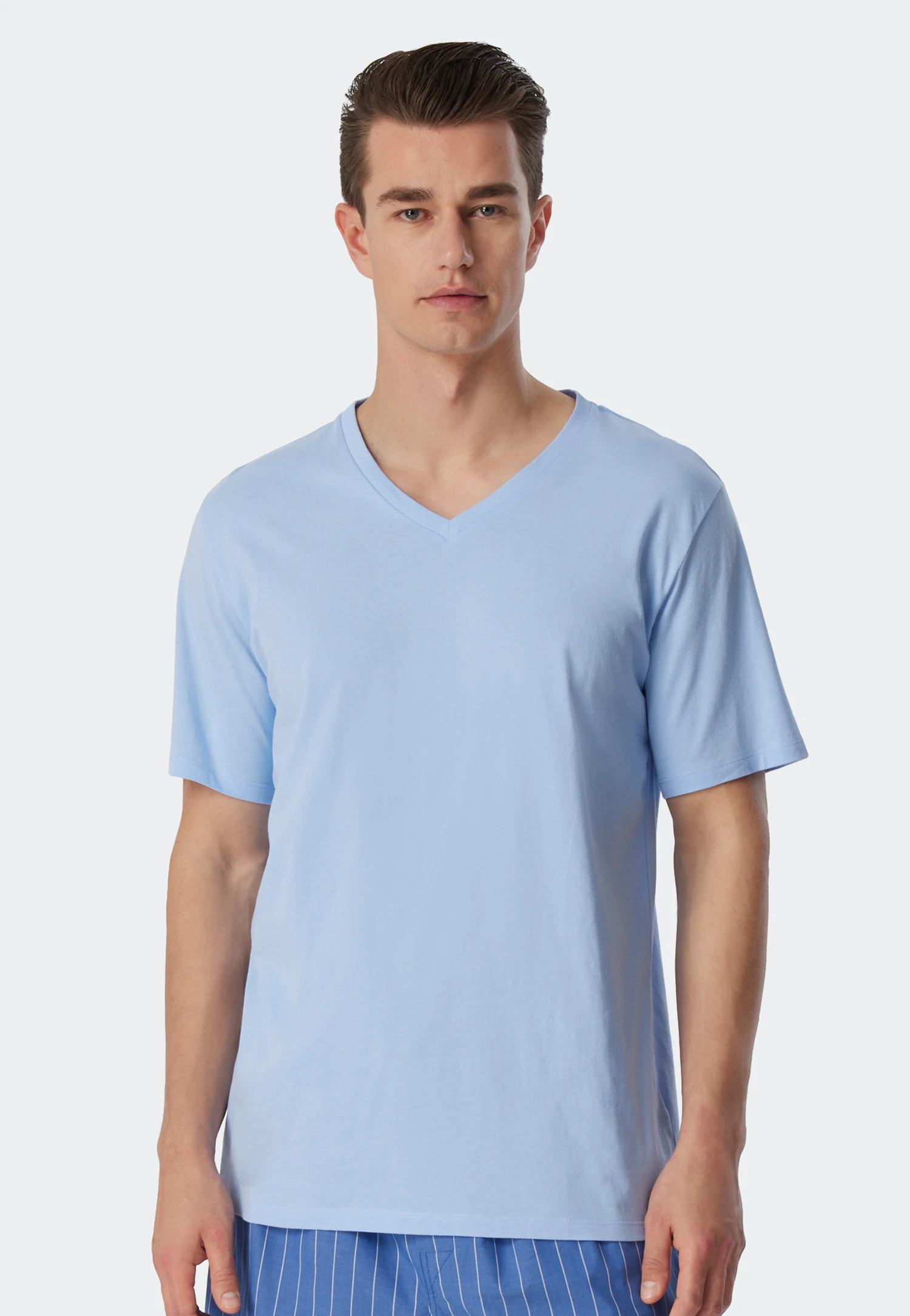 Whether it’s for relaxed mornings or restful nights: this men’s short-sleeved shirt is always the right choice and can be easily paired with other favorites from the Mix & Relax line. Thanks to the soft single jersey made from 100% organic cotton, the T-shirt is particularly comfortable and has a pleasantly loose fit. The V-neck serves as a masculine detail. Just the thing for men who prefer to relax in the tried and tested best SCHIESSER quality!