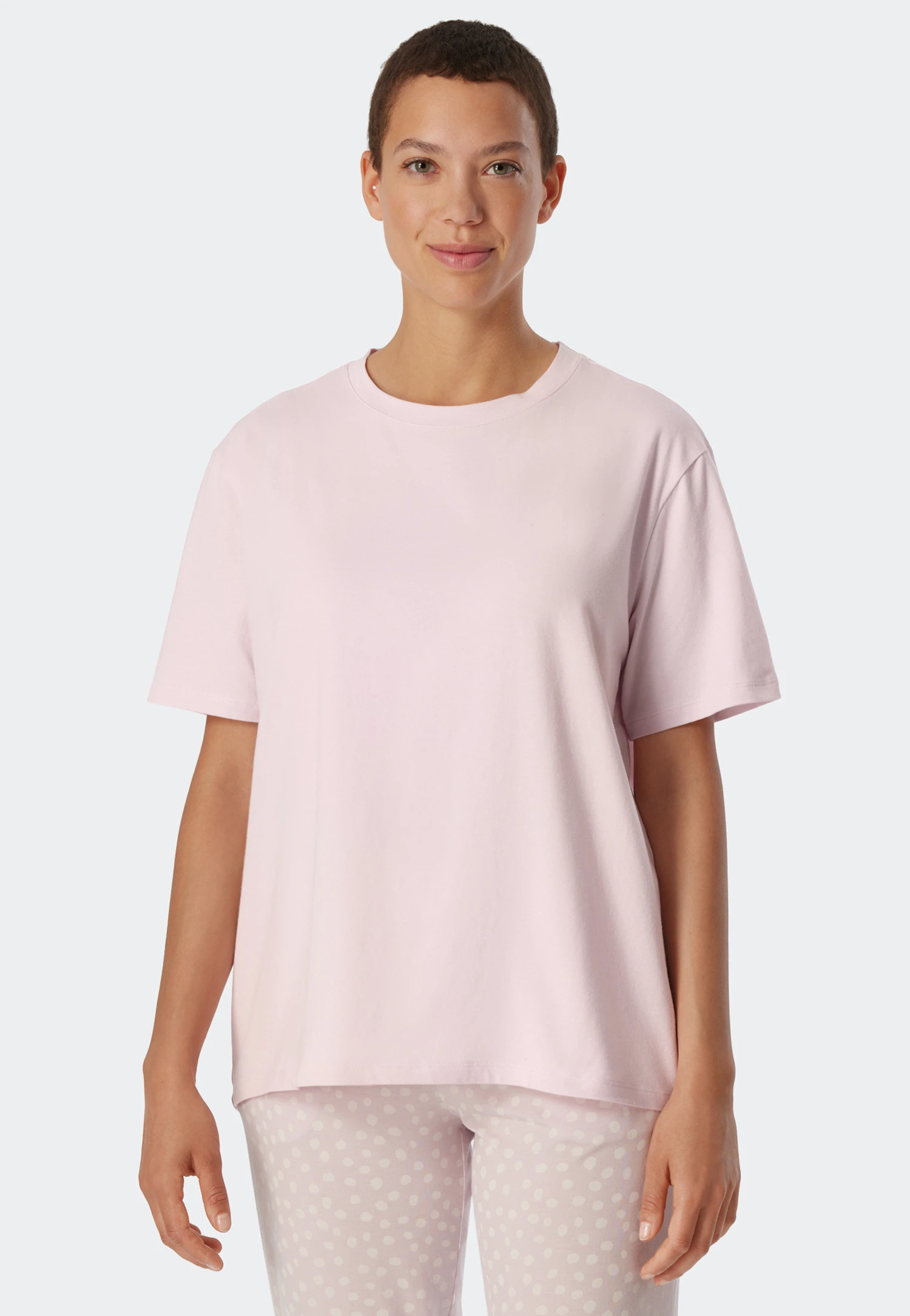 This women’s T-shirt simply goes with anything! The popular Mix+Relax line lives up to its name once again with this short-sleeved T-shirt whose uncomplicated, casual cut lets it pair beautifully with so many outfits. Soft, stretchy single jersey made from organic cotton and a touch of spandex ensures a high degree of wearing comfort. It won’t matter if you’re relaxing on the couch or sleeping, this T-shirt will spoil you at all times with the very best SCHIESSER quality!