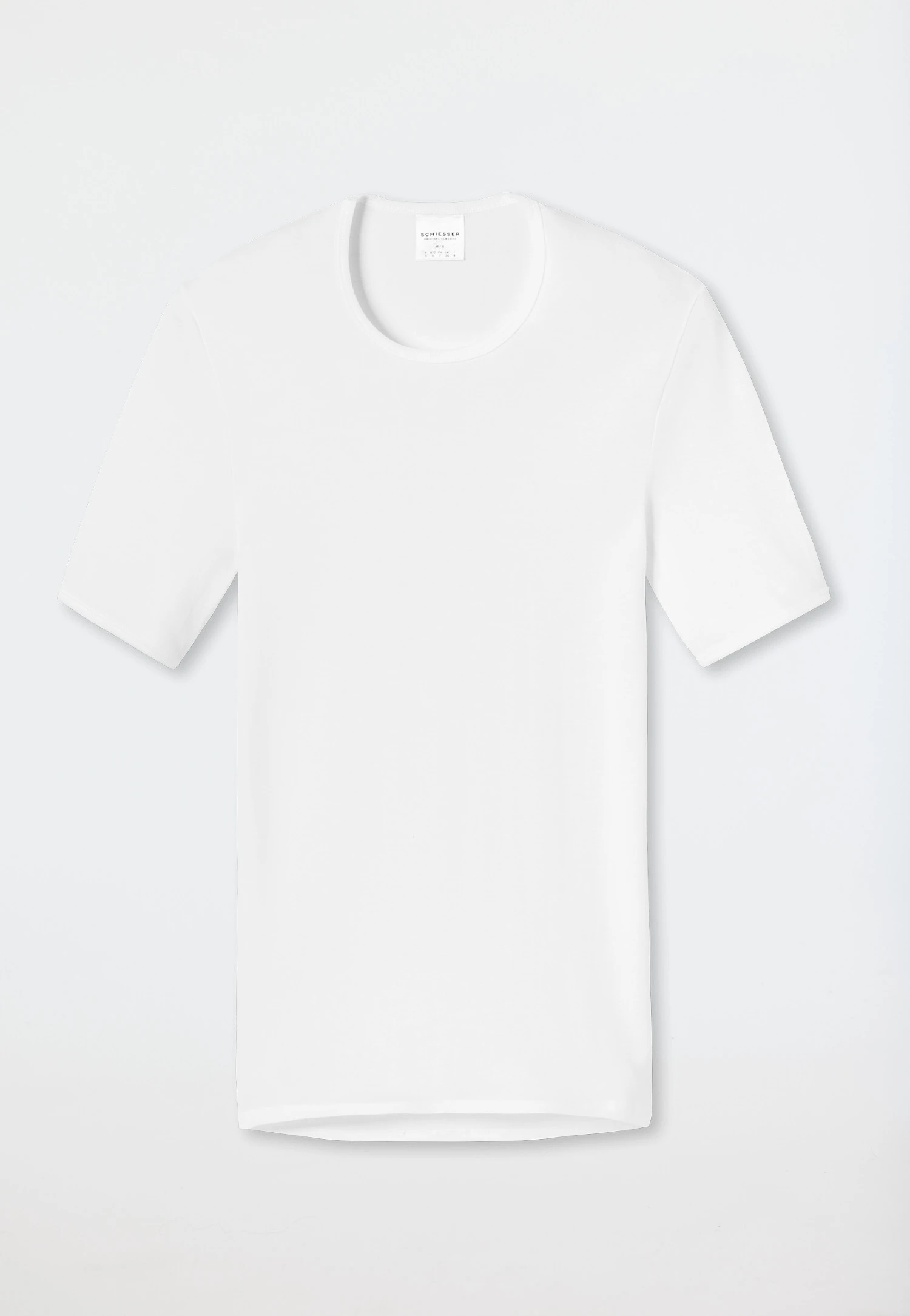Underwear originals in top shape: This white men’s shirt with short sleeves from the SCHIESSER “Original Classics” line combines high-quality materials with an optimal fit. The 100% super combed cotton feels especially soft on the skin and with its round neckline, without any bothersome side seams, it is comfortable to wear. A real SCHIESSER classic of the best quality!