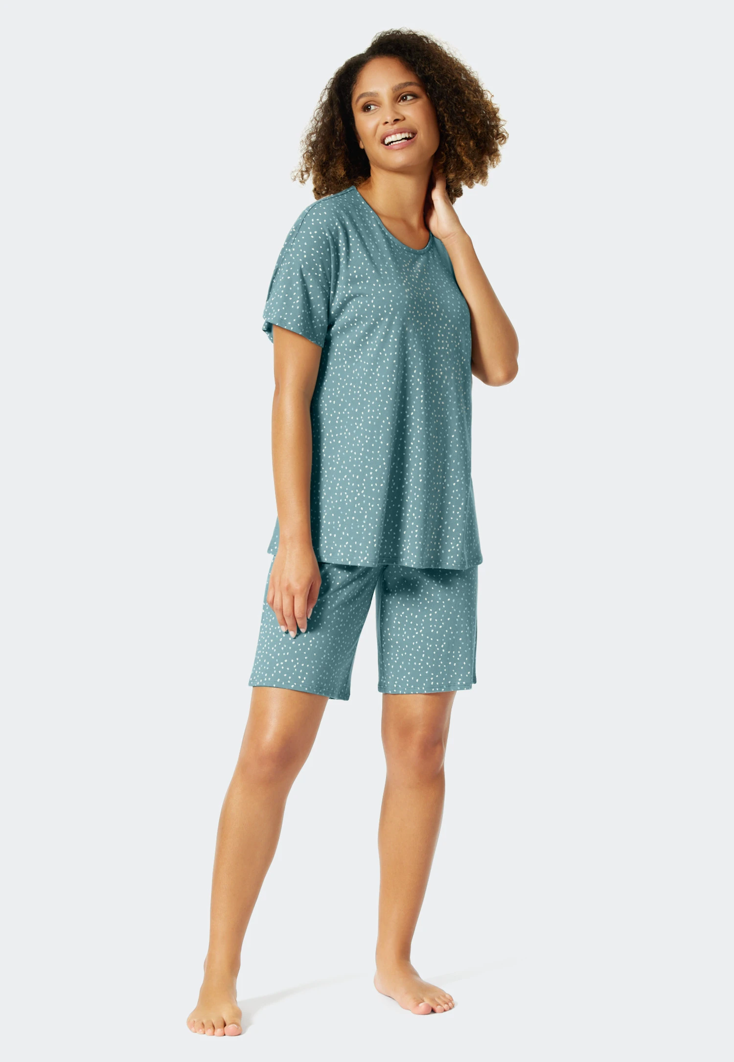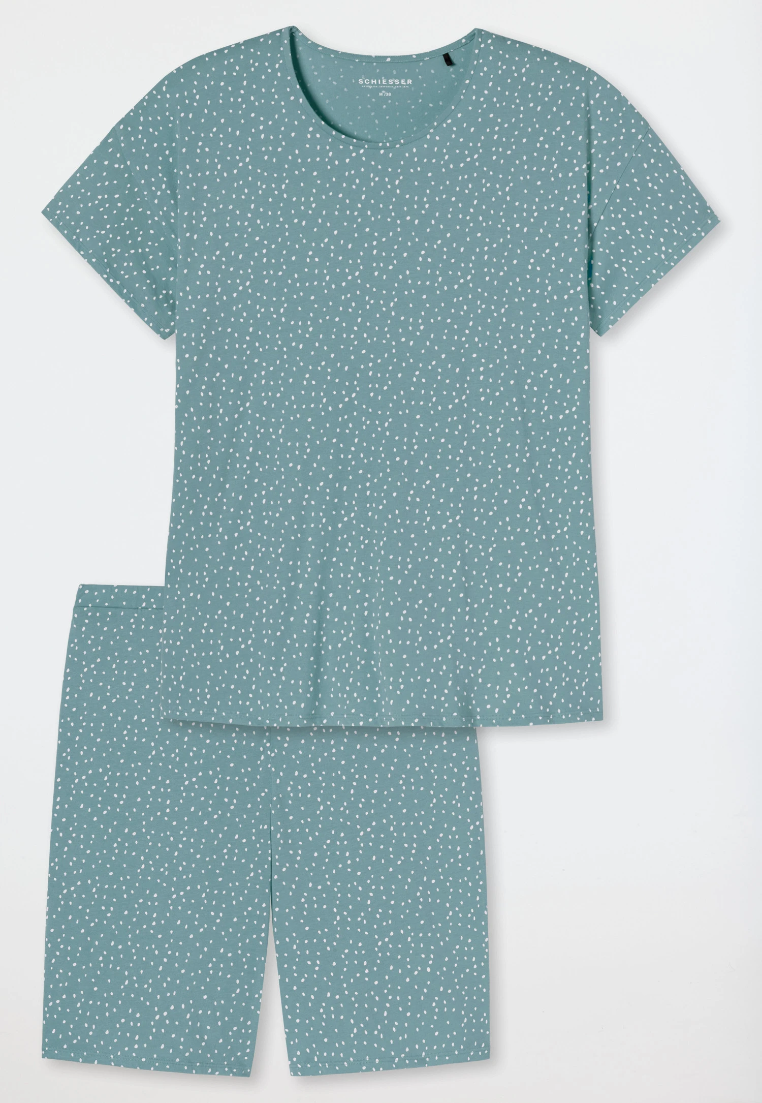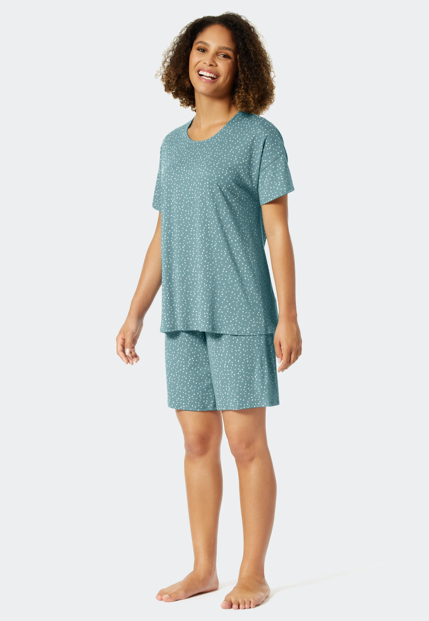 These women’s short pajamas with their charming polka dot print guarantee sweet dreams! Thanks to its comfortable A-line silhouette and crew neck, the T-shirt provides plenty of freedom of movement. The casual pants with their elastic waistband also play comfortably around the body. The highlight is the material: single jersey made of breathable Tencel and organic cotton is not only super-soft, but also sustainable. SCHIESSER quality that meets the highest demands!