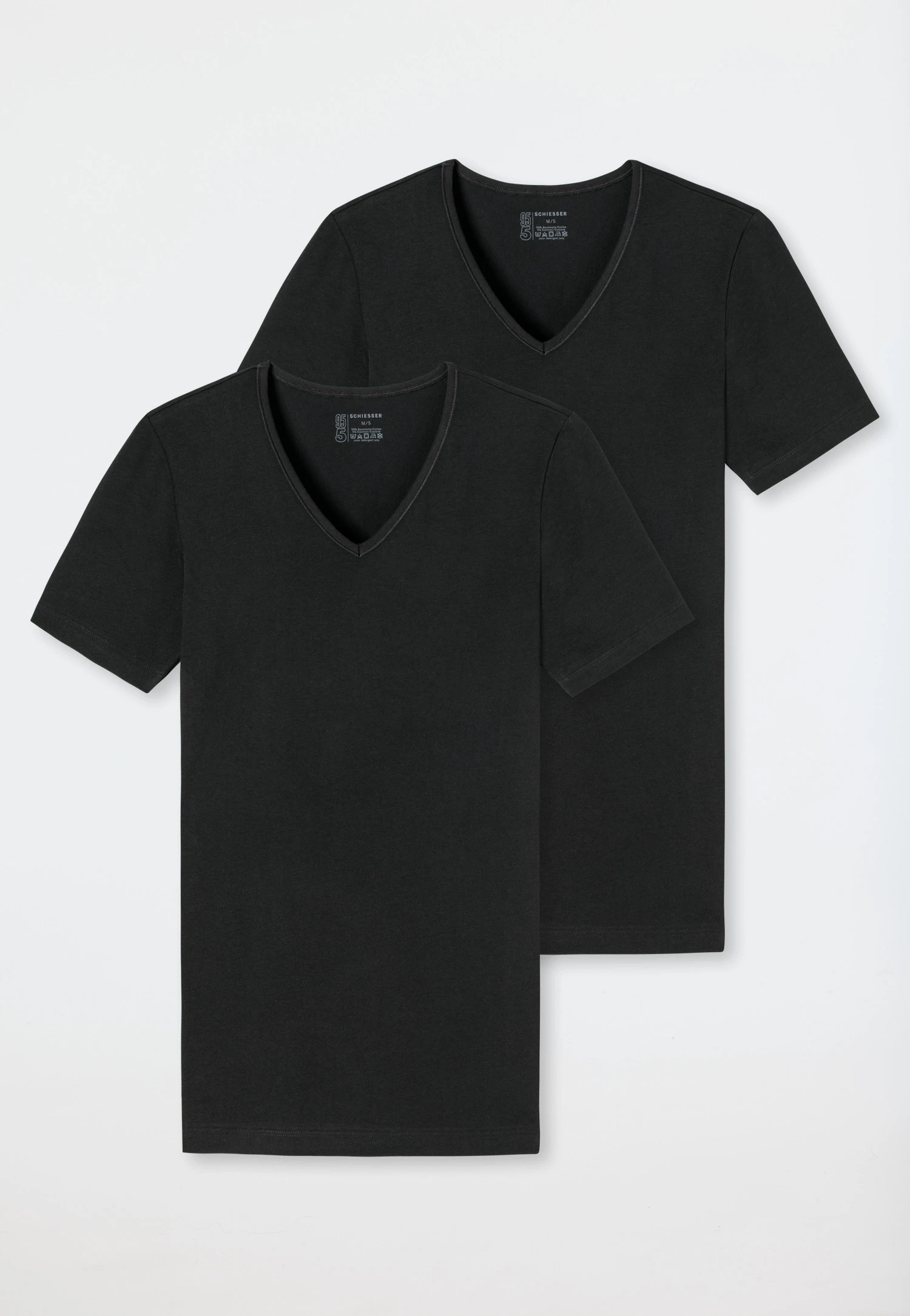 Comfort in a double pack: These short-sleeved shirts are just right for men who appreciate easy-to-wear underwear they can depend on. Made of a mix of 95% sustainable organic cotton organic cotton and 5% spandex and sold in a pack, these shirts add ease and comfort to your everyday life. With its deep V-neck, this duo can also be easily worn under a dress shirt, making it a new favorite in the best SCHIESSER quality!
