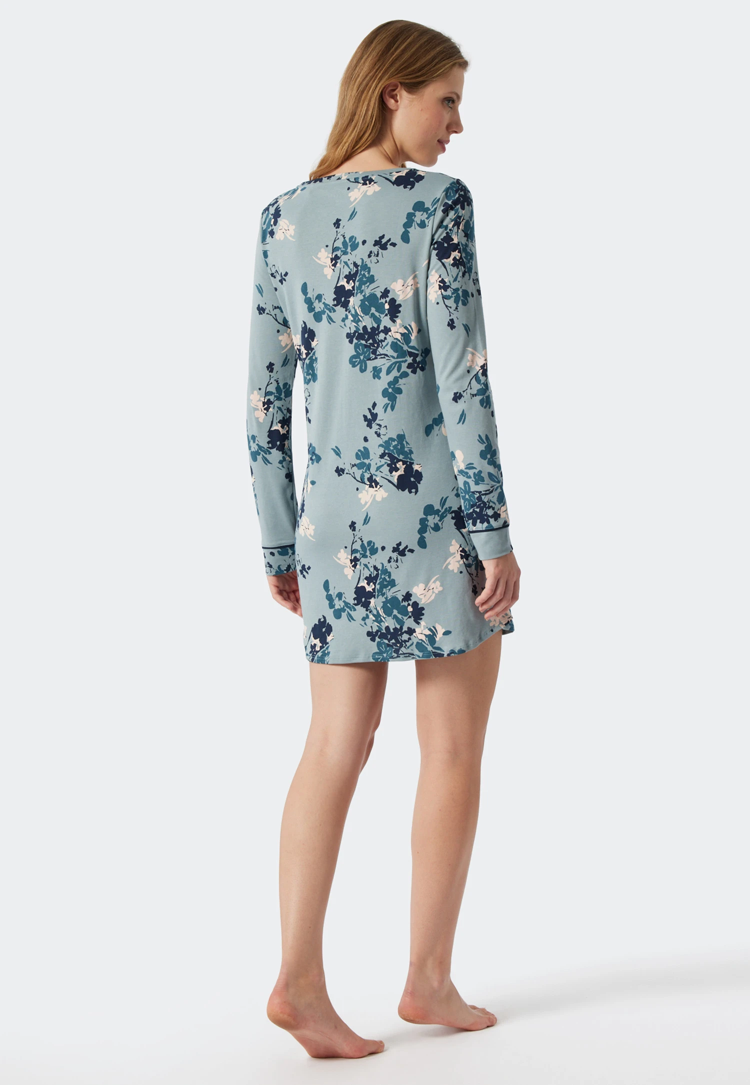 - gray-blue long-sleeved sleep shirt for women with a large floral print