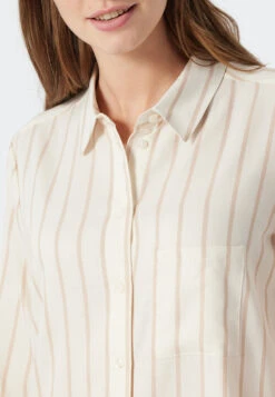 Sleepwear really can be this casual: this striped women’s sleep shirt in off-white is a real favorite! The sleep shirt impresses with its clean look. Fashionable details include the curved hem, the chest pocket and the wide cuffs on the sleeves. The full-length button placket, the shirt collar with shoulder yoke and the box pleat at the back promise comfort. The woven fabric made of cotton and natural, breathable Tencel feels wonderful on the skin. Best SCHIESSER quality!