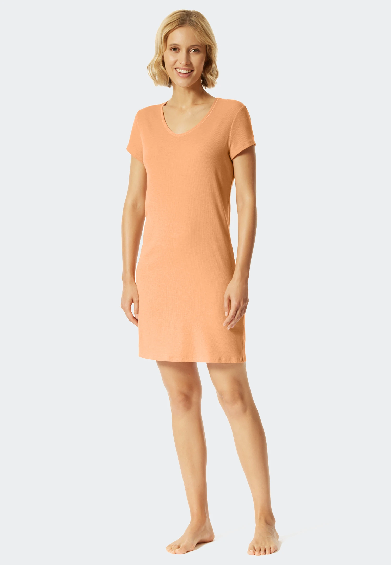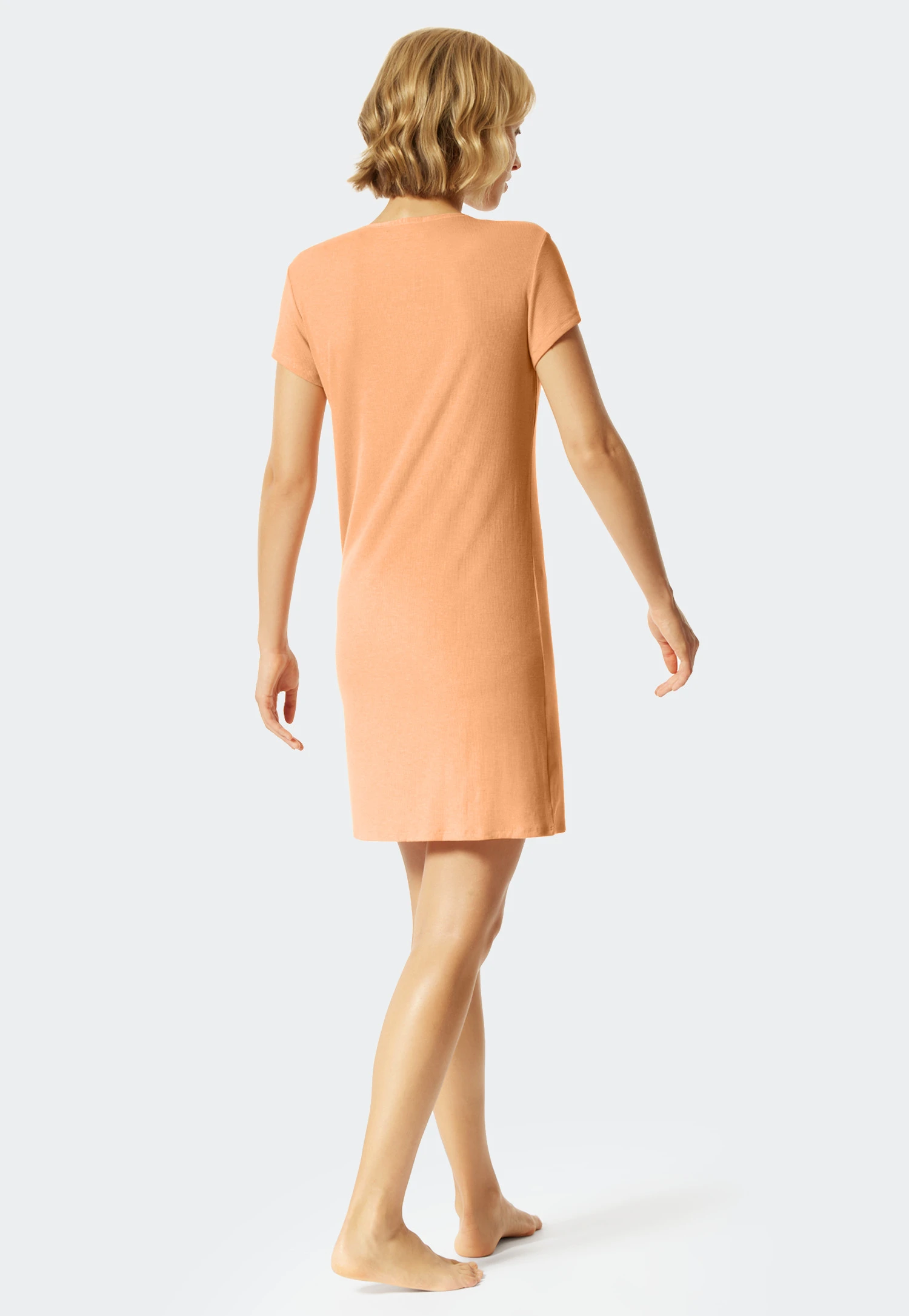 - peach-colored, short-sleeved sleep shirt for women