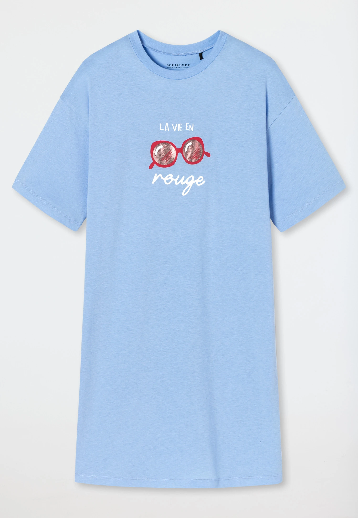 - girls’ short-sleeved, light blue sleep shirt with sunglasses and “LA VIE EN rouge” lettering