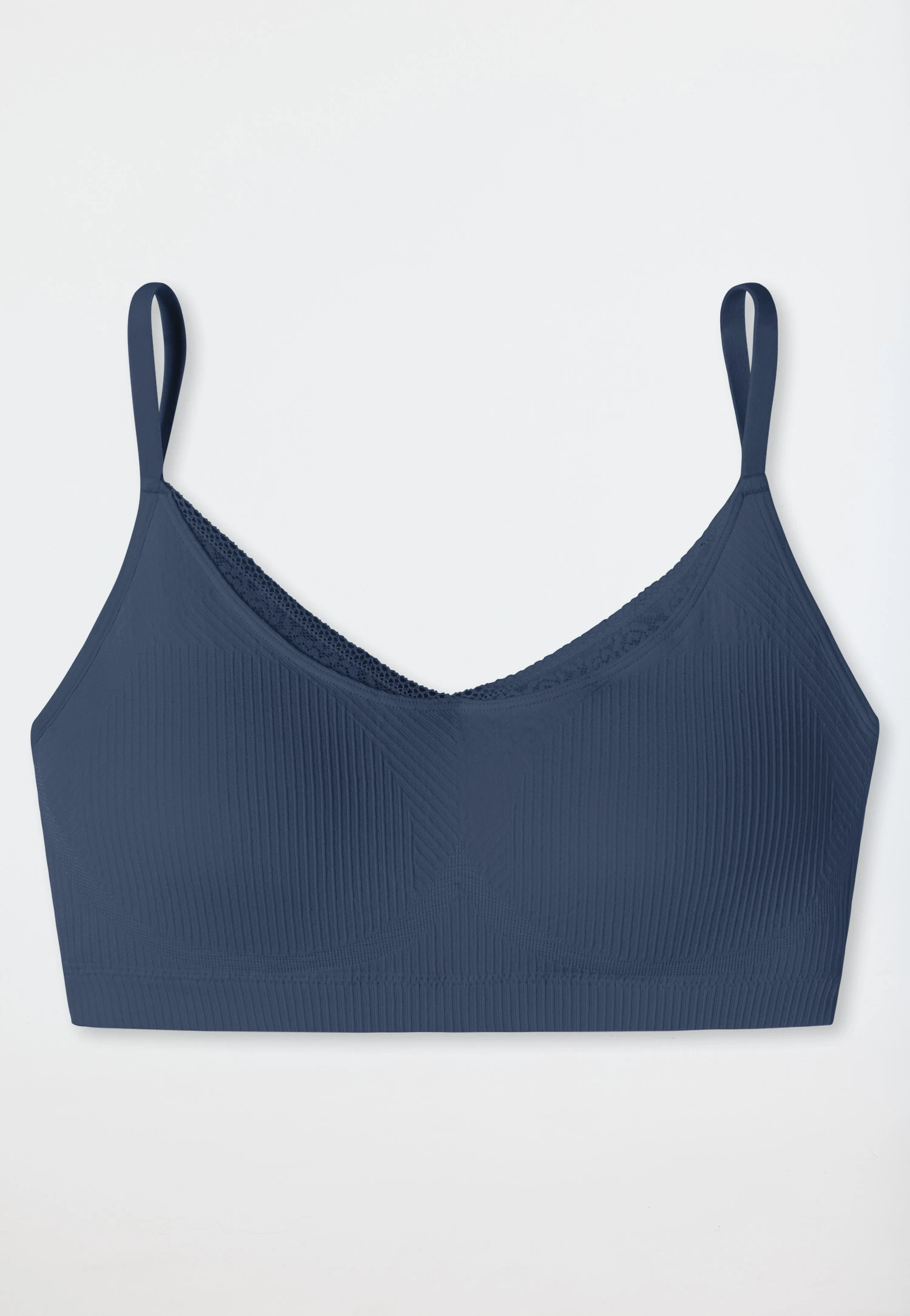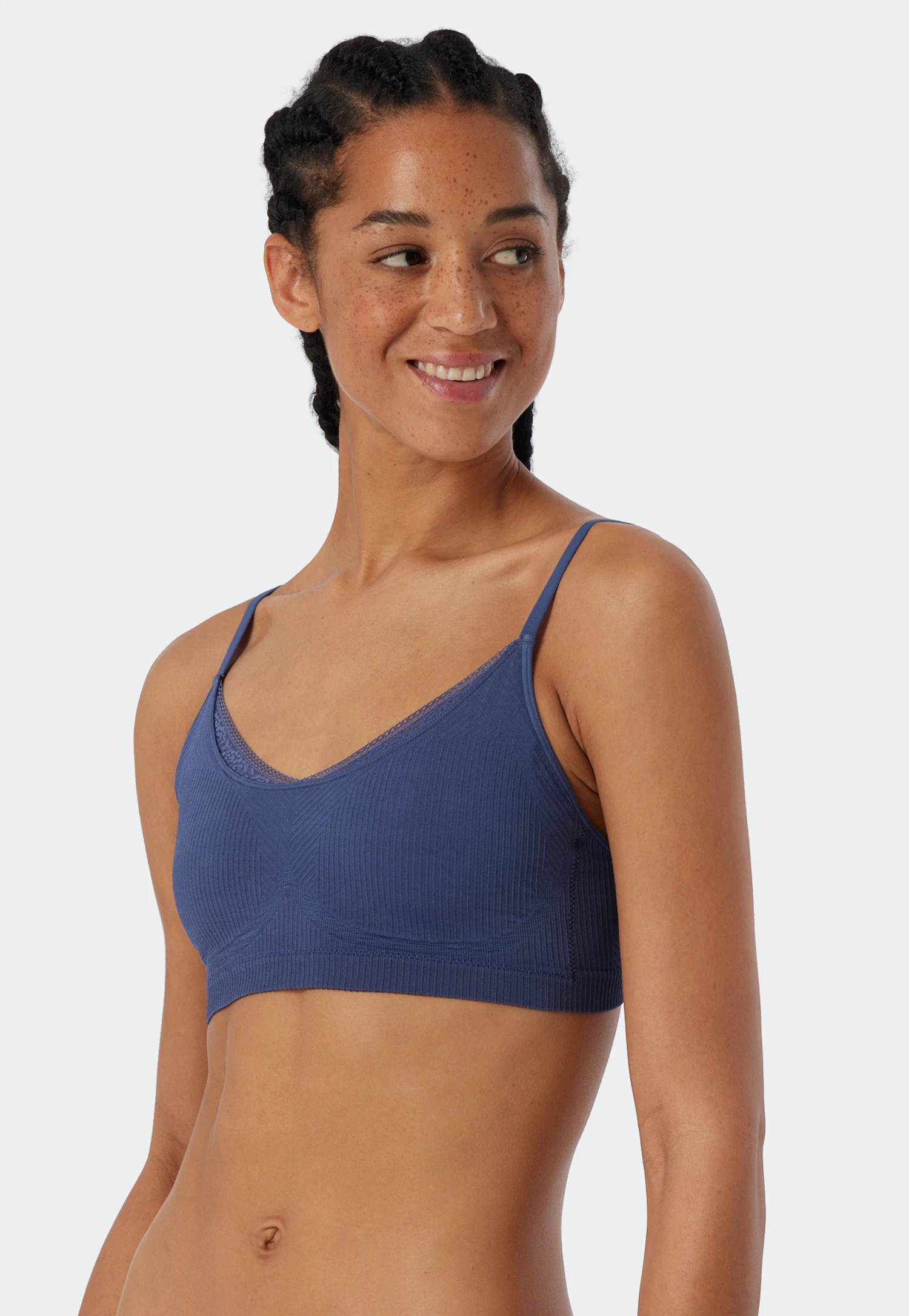 Wonderfully soft, wonderfully lightweight: this soft bra for women will inspire you! This innovative undergarment adapts perfectly to the shape of your body. The trendy rib look impresses with its highly stretchy material, which offers a lot of freedom of movement. The removable cups and adjustable straps guarantee comfort. The delicate lace along the neckline is a nice detail. And the bra made of stretchy single jersey is also sustainable thanks to its recycled content. Best SCHIESSER quality!