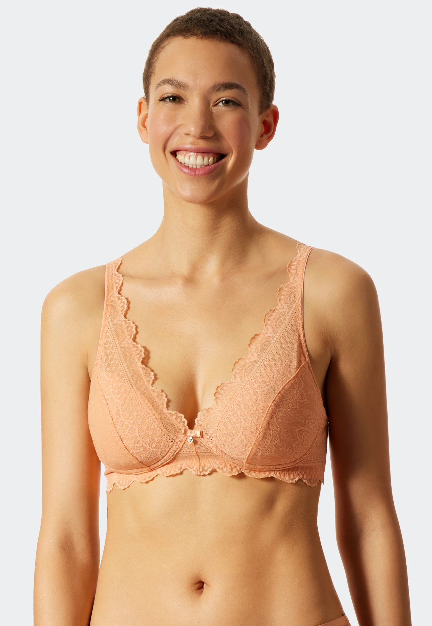 Fine lingerie that fits perfectly: This soft bra for women is a particular favorite! Delicate all-over lace and a bow at the center give it its feminine look. Soft cups and adjustable straps create wonderful décolleté. The bra does not need any underwire and promises ideal wearing comfort with a comfortable under bust band. The stretchy material not only feels good, but is also sustainable thanks to its recycled content. Best SCHIESSER quality!