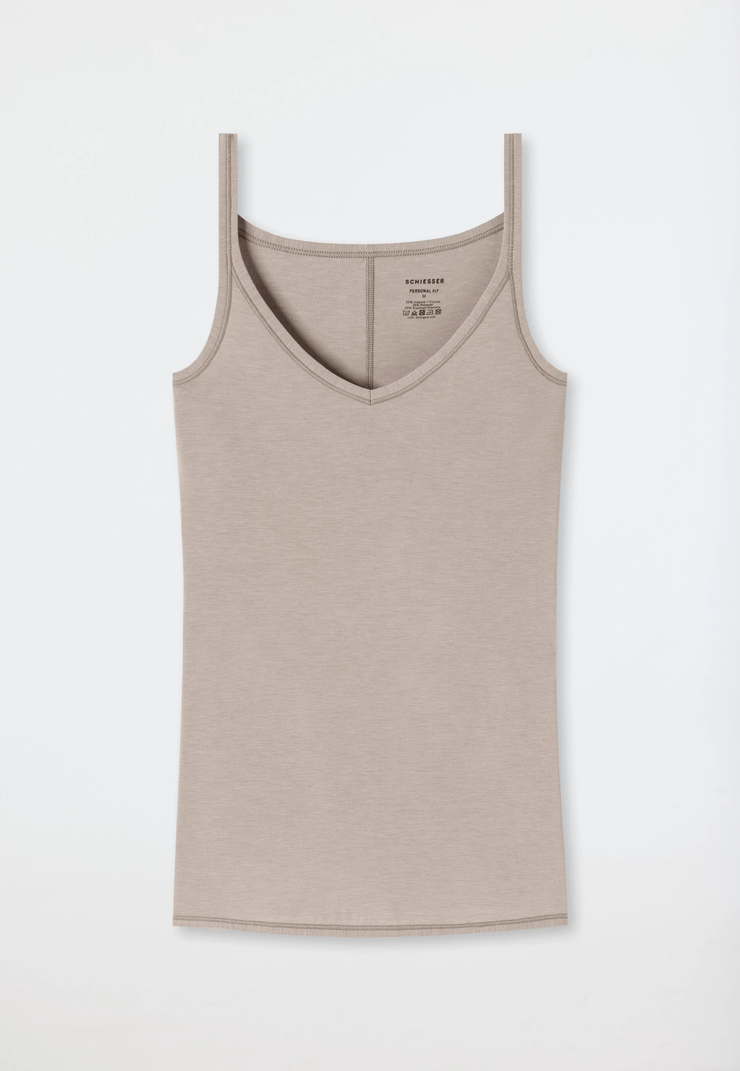 This spaghetti strap top for women will be your favorite basic for sports and leisure This new member of the “Personal Fit” family represents functional material and a pure look. The V neck and narrow straps give it a feminine touch. Stretchy single jersey with viscose fits like a tailor-made garment, is breathable and temperature regulating. A wonderfully light piece of underwear with a silky sheen that follows your every move: simply the best SCHIESSER quality!