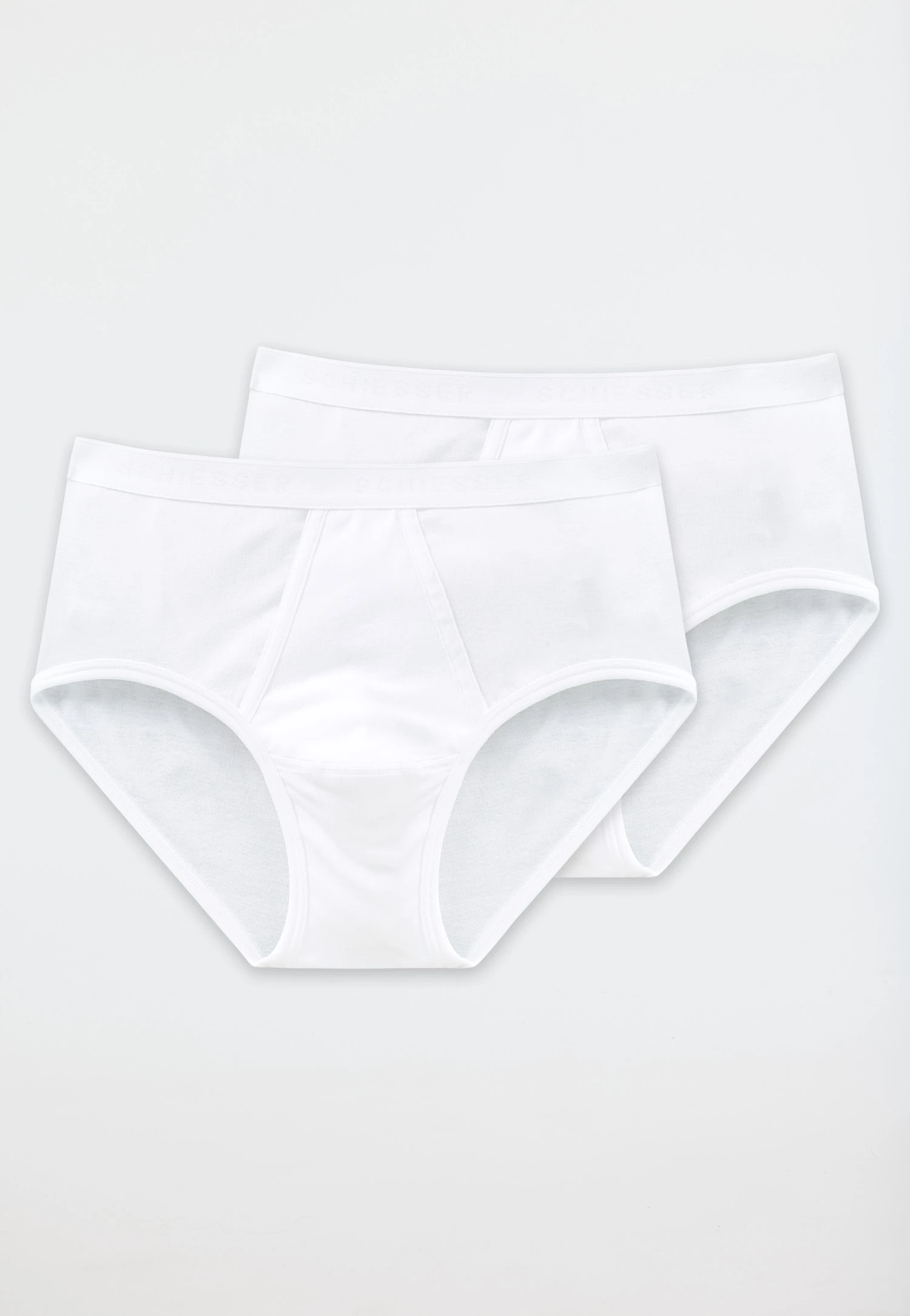 Underwear classic in a double pack: These two white sport briefs from the SCHIESSER “Original Classics” line convince discriminating gentlemen with their high-quality material and the optimal wearing comfort. 100% super combed cotton feels beautifully soft on the skin, and provides a perfect fit even after many 95 degree washes thanks to the SCHIESSER elastic band. A men’s underwear duo, dimensionally stable and comfortable, totally free from any bothersome side seams, but in the finest SCHIESSER quality!