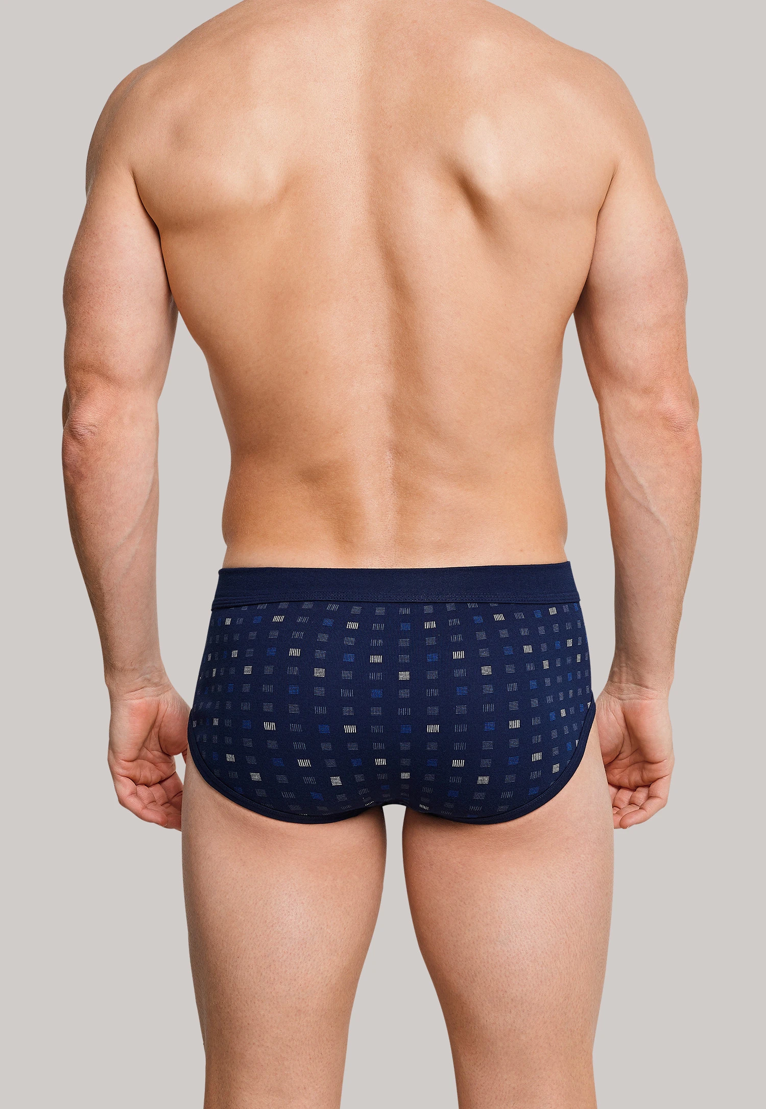 Classic underwear in a double pack: These navy blue checkered men’s sports briefs are the perfect combination of a timelessly beautiful design and the best material. A modified checked print gives the brief a masculine quality, which is felt wonderfully soft and comfortable on the skin in 100% super-combed cotton material and fine rib quality. Ideal for men who appreciate durable, form stabile and long-lasting daywear in an authentic look.