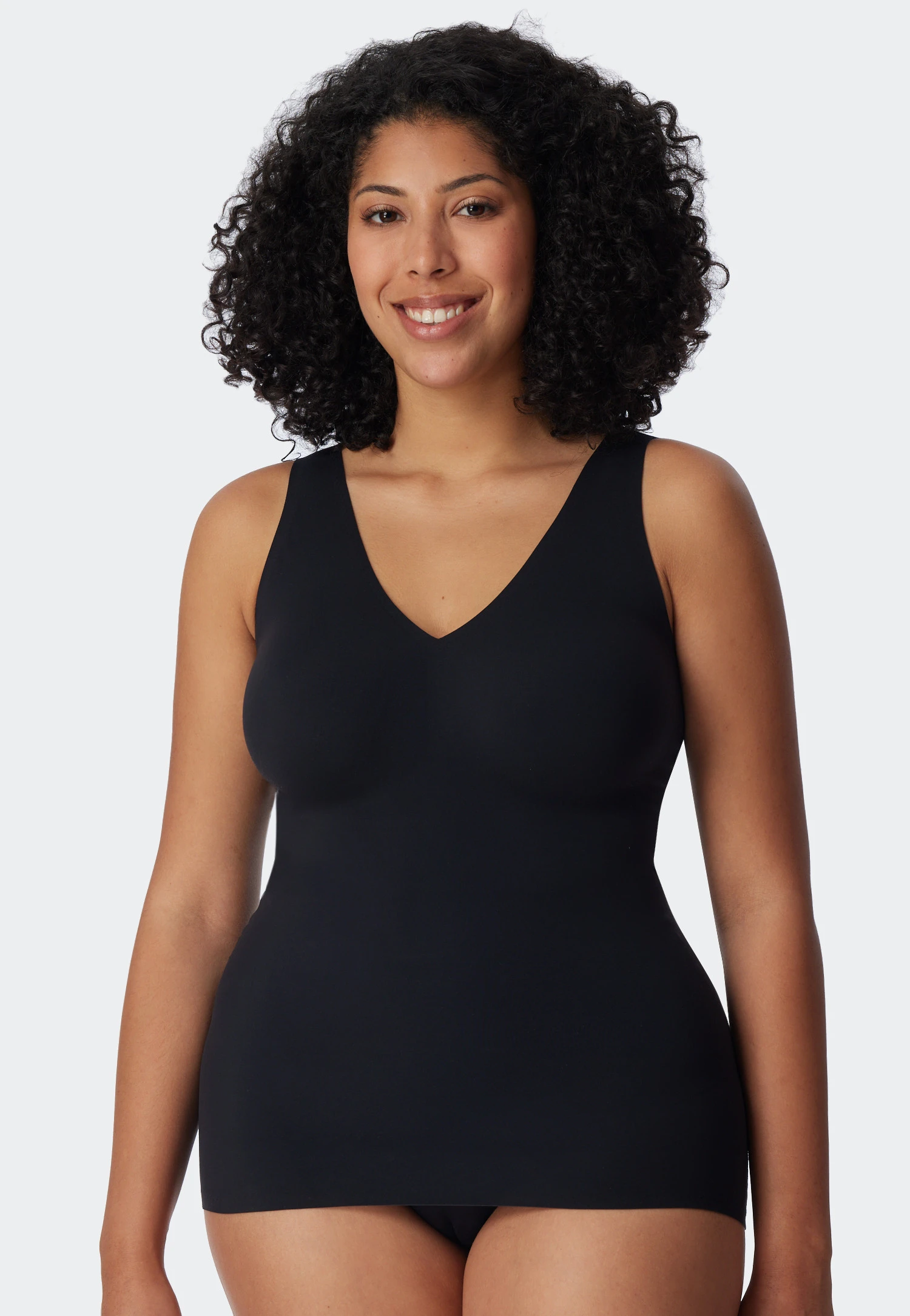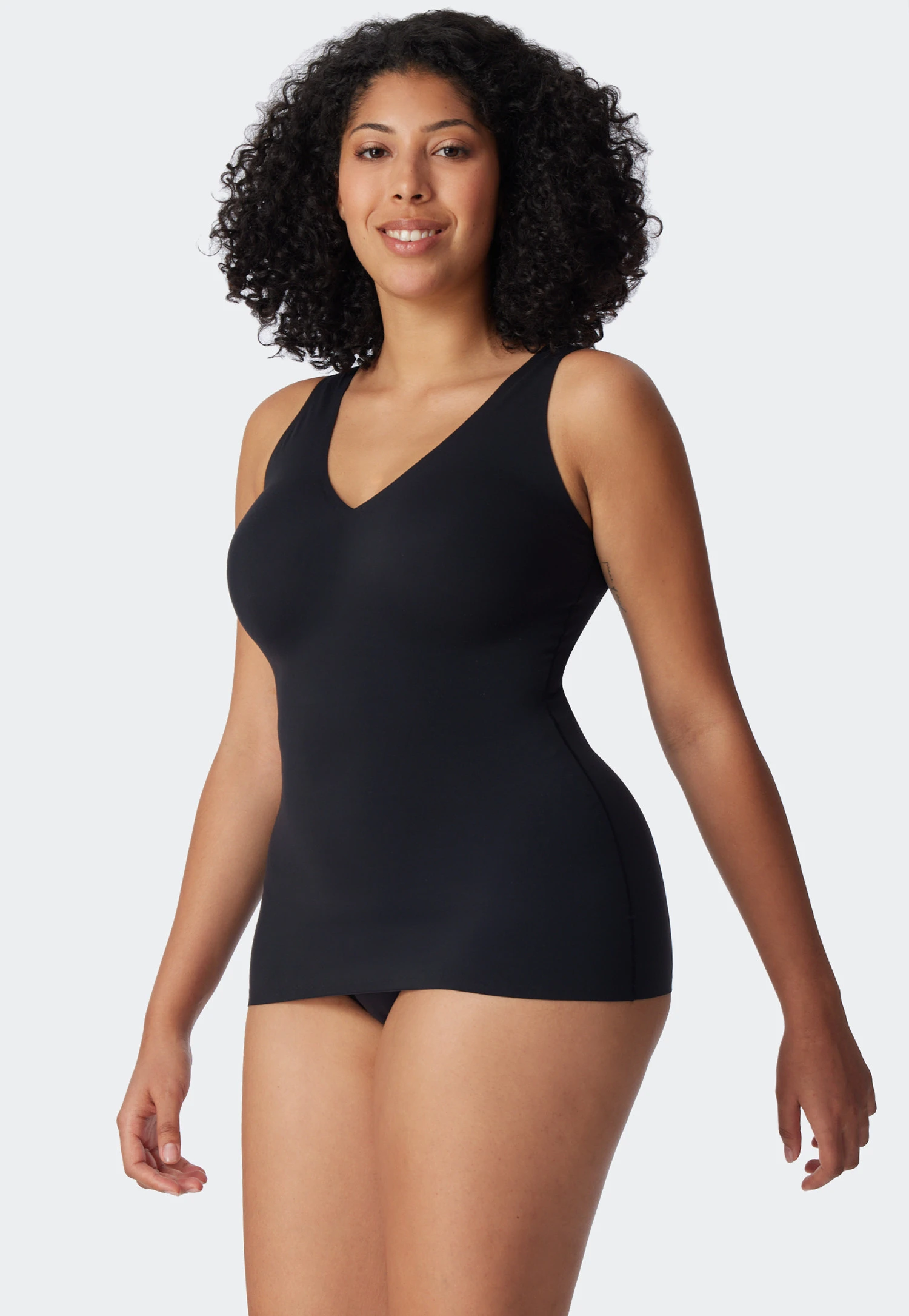 Ultrasoftte, peached microware is the secret of this women’s top with pads from the new SCHIESSER series “Invisible Soft”! This favourite piece feels like a second skin and remains invisible even under close-fitting clothing. The pads provide perfect hold and can be removed if necessary. With its V-neck the top creates a beautiful décolleté. Enjoy extra soft underwear that will make you look good in any situation. Best SCHIESSER quality!