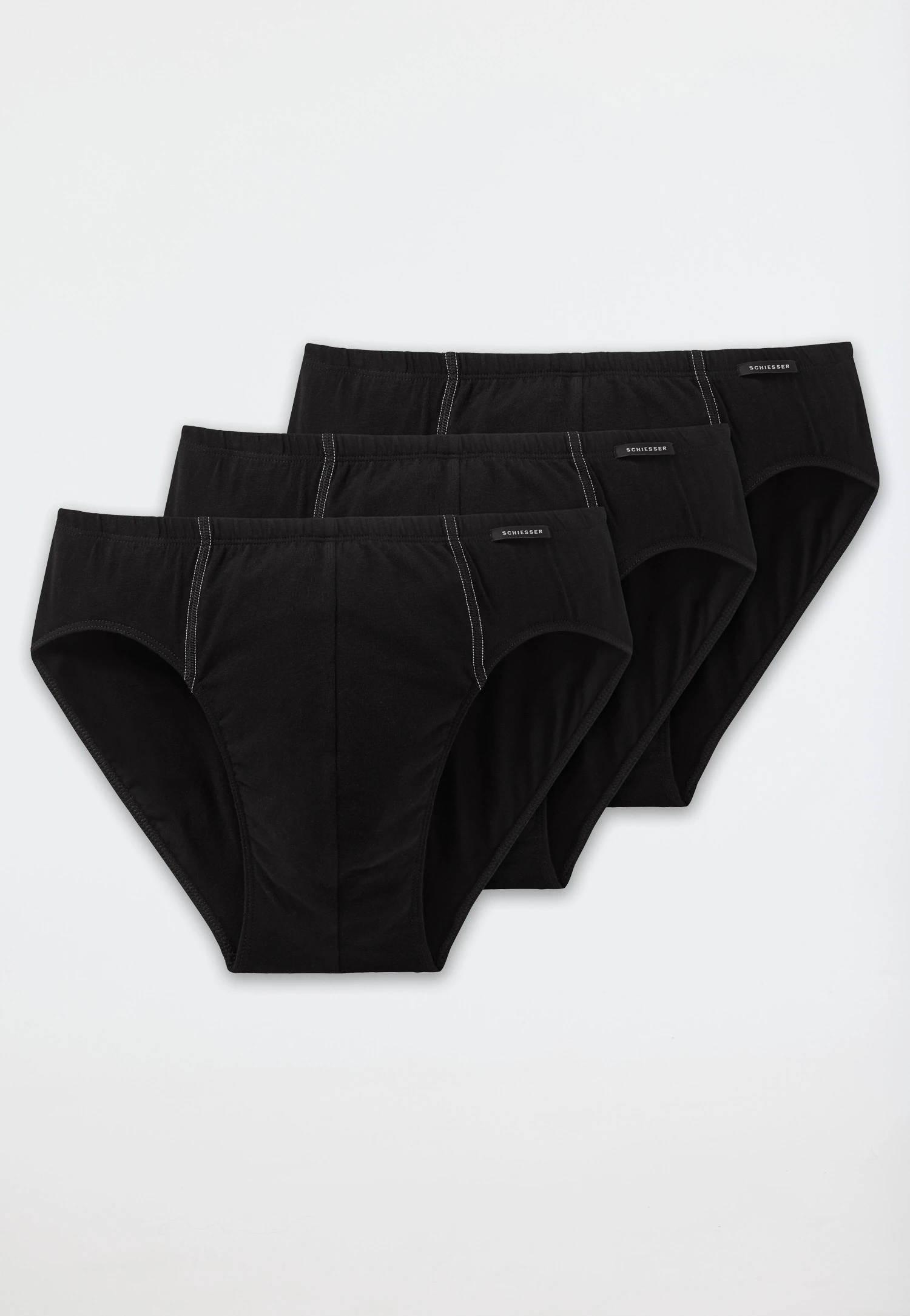 Men’s underwear in a value pack: These bikini briefs from the SCHIESSER “Essentials” line satisfy three-fold with their minimalist design and perfect fit. Elastic single jersey affords maximum comfort and harmonious details with gray decorative seams on the side and a subtle logo on the waistband. Ideal for men who value attractively priced underwear with proven SCHIESSER quality!