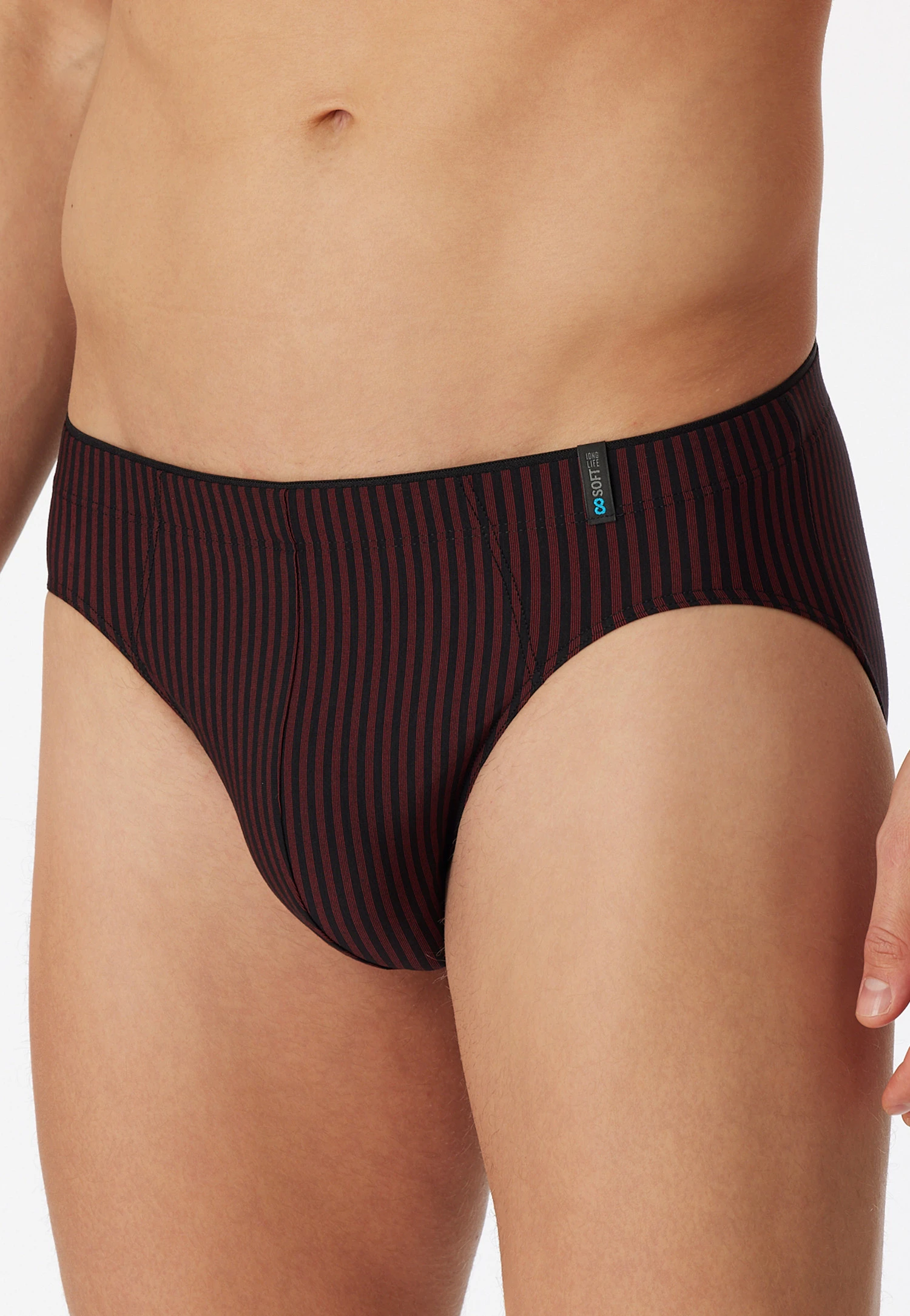 These black-red striped bikini briefs from the SCHIESSER “Long Life Soft” line win over discerning with their innovative material and optimal fit. Thanks to the unique ReaLasting cotton finish, the brief does not only have perfect moisture management but also gently adapts to any movement of the body, in elastic single jersey. A low-pilling, comfortably smooth men’s brief which stays in shape even after many washes!