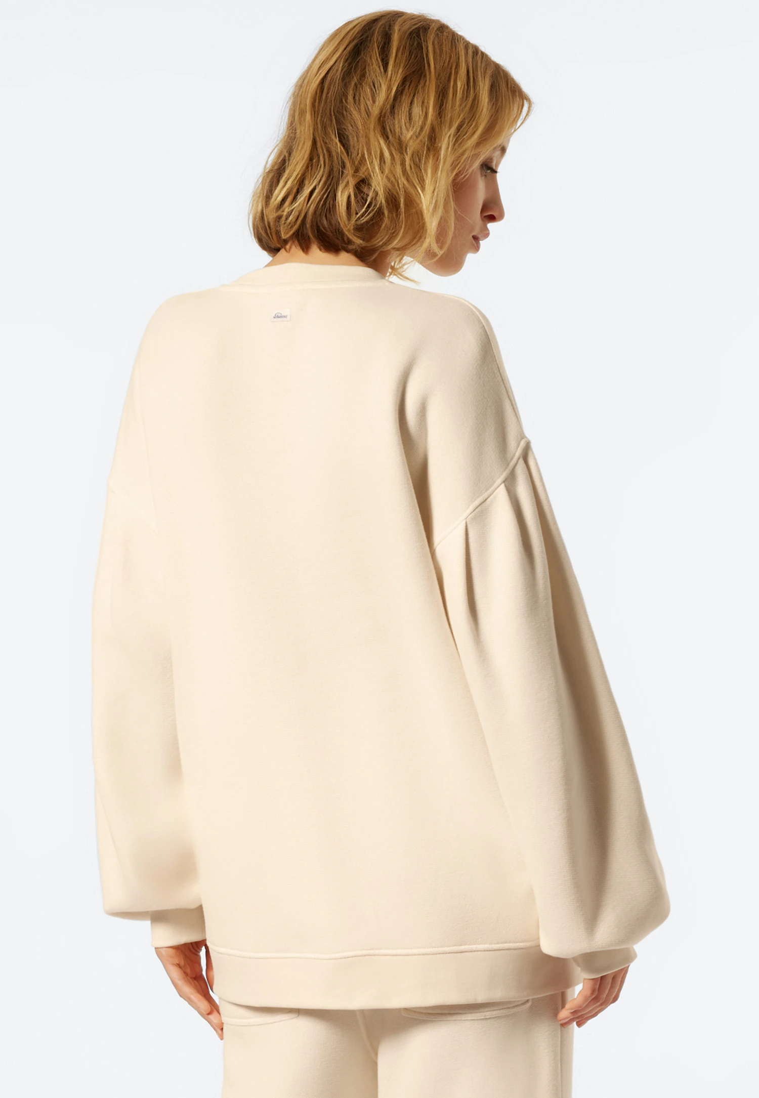 I’m Lena, a sweater like no other. With my loose cut with oversized shoulders, I simply look casual. The wide sleeves with decorative pleats and the super comfortable cuffs underline my look. With my heavyweight sweat fabric – non-slip on the outside, soft on the inside – you’ll feel secure. This is ensured by my high-quality material: sustainable, skin-friendly organic cotton with soft lyocell. I’m special – just like you.