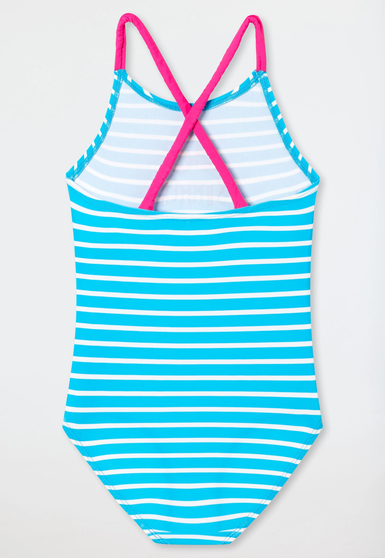 - with ribbed, elastic straps in pink that cross at the back