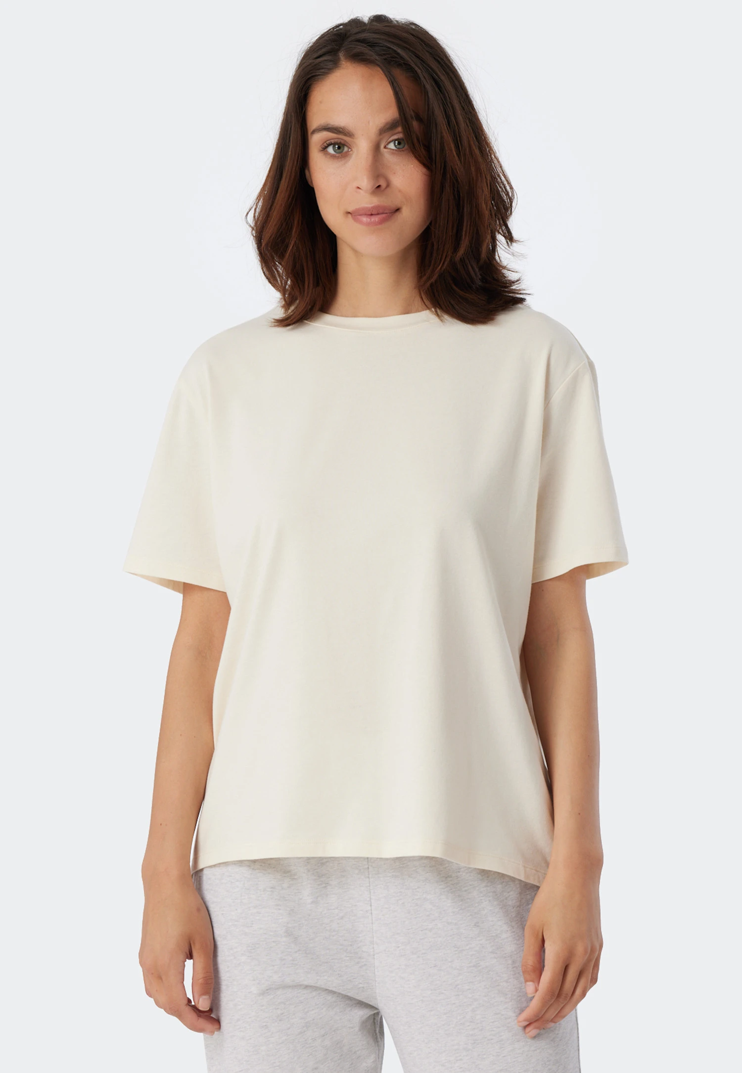This women’s T-shirt simply goes with anything! The popular Mix+Relax line lives up to its name once again with this short-sleeved T-shirt whose uncomplicated, casual cut lets it pair beautifully with so many outfits. Soft, stretchy single jersey made from organic cotton and a touch of spandex ensures a high degree of wearing comfort. It won’t matter if you’re relaxing on the couch or sleeping, this T-shirt will spoil you at all times with the very best SCHIESSER quality!