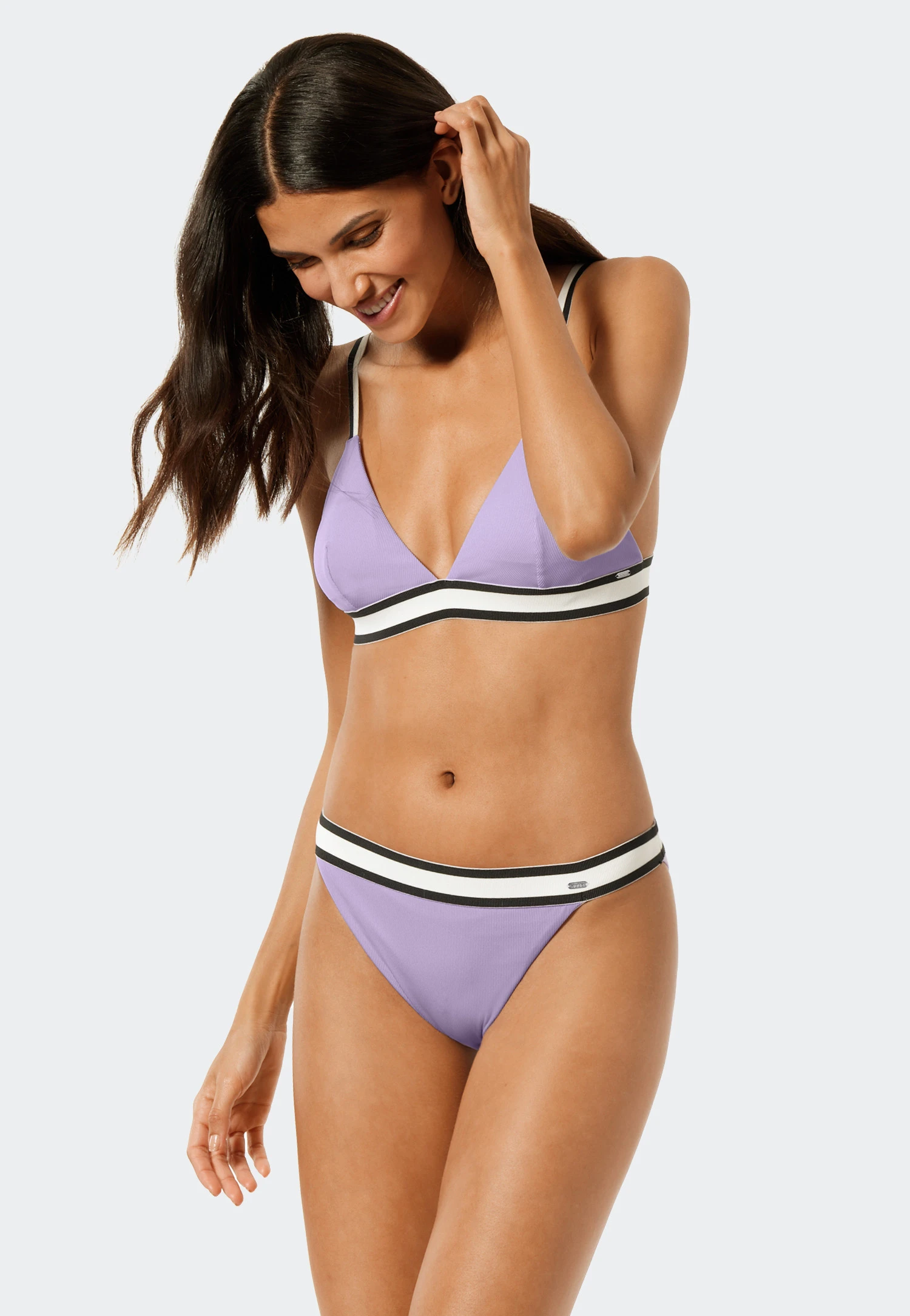 These beautiful Tai bikini bottoms have real charm! With the black and white striped elastic waistband and sexy high leg opening you’re guaranteed to cut a good figure at the beach and pool! The fashionable ribbed look goes well with this, while the soft lining on the inside is wonderfully comfortable. These bottoms, made of high-quality recycled material, are also a hit when it comes to sustainability. Pair with the right top and your new dream bikini is ready to go! Best SCHIESSER quality!
