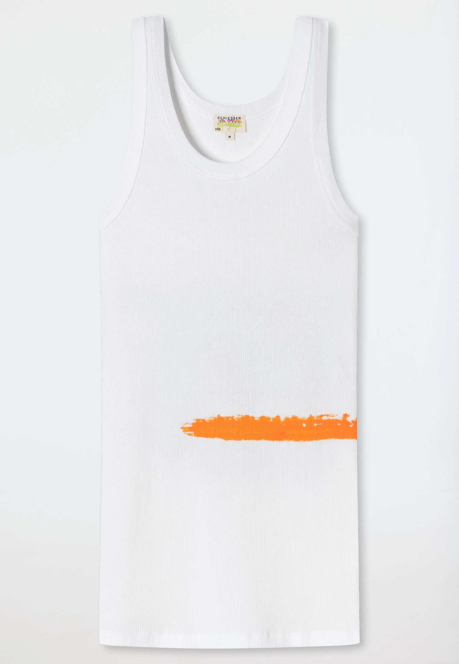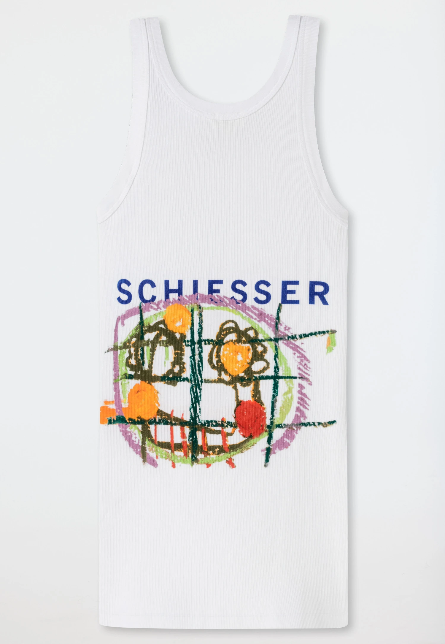 A SCHIESSER classic is celebrating its comeback with the motto “Lust for Life”: the “Friedrich” tank top for men is back, in traditional double rib and made of 100% organic cotton. The red carpet was rolled out for this special occasion: artist, designer and musician Noah Becker has personally immortalized himself on the top with a drawing. The colorful, large-format print stands for lightness and pure joie de vivre. A casual companion for jeans and shorts!