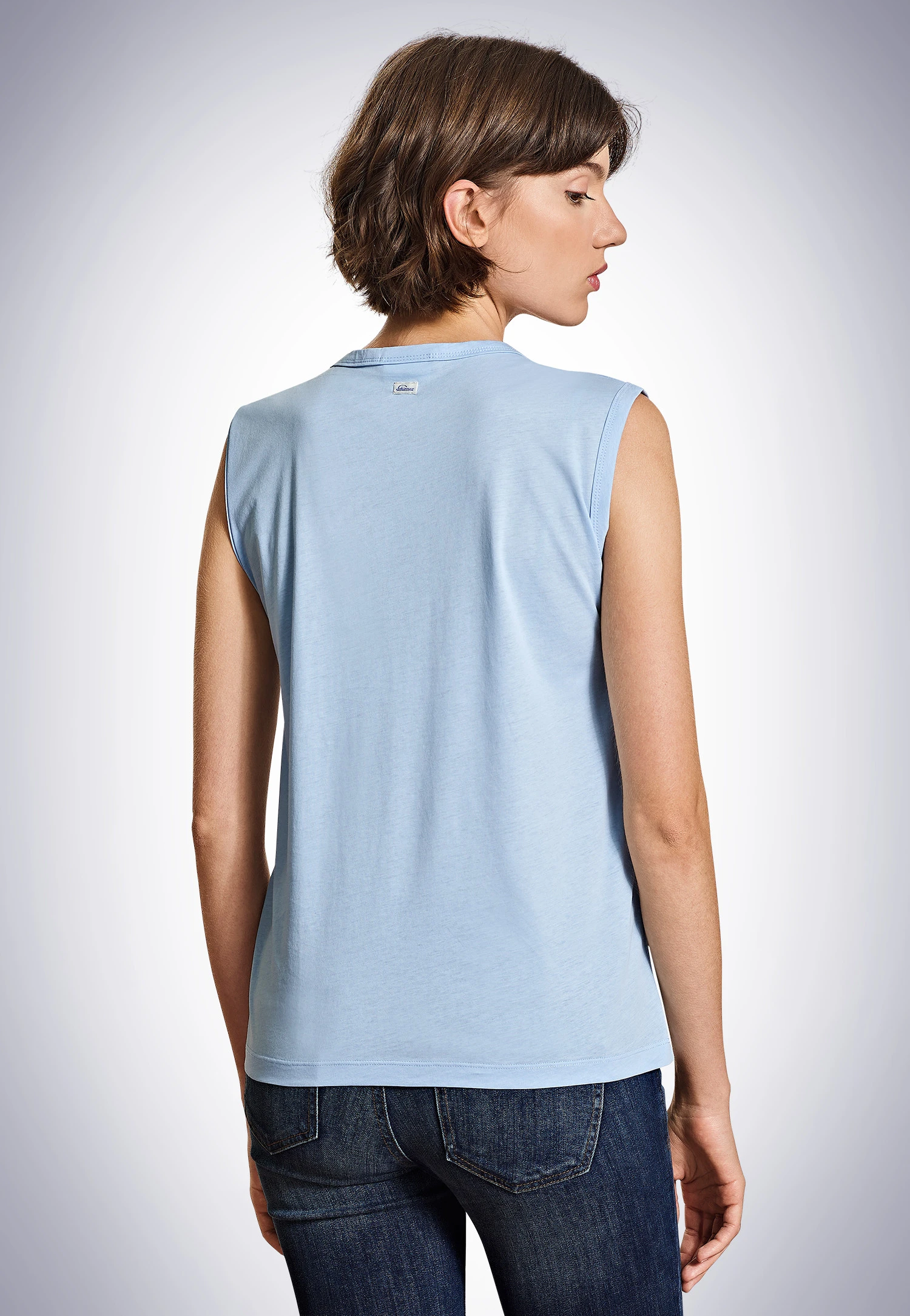 I’m Carla, also known as “the one and only”. I am a tank top made of premium single jersey, pure, extra-fine Supima cotton. My material is particularly smooth and has a noble sheen, which shows you how high quality I am. My clean, pure look is what defines me. My wide cut makes me casual. Whether worn under a cardigan or on its own with denim – I give each of your outfits a very special touch.