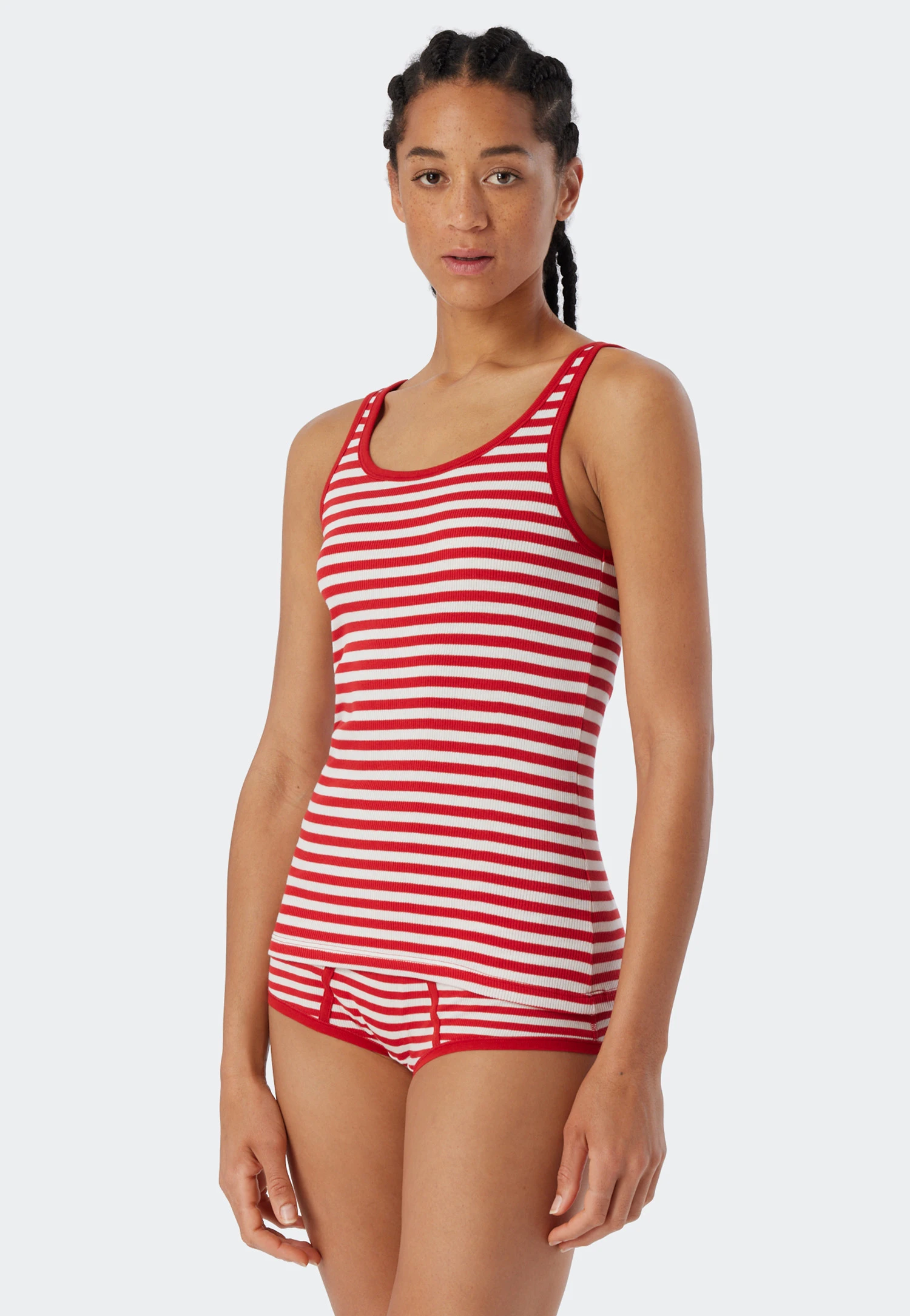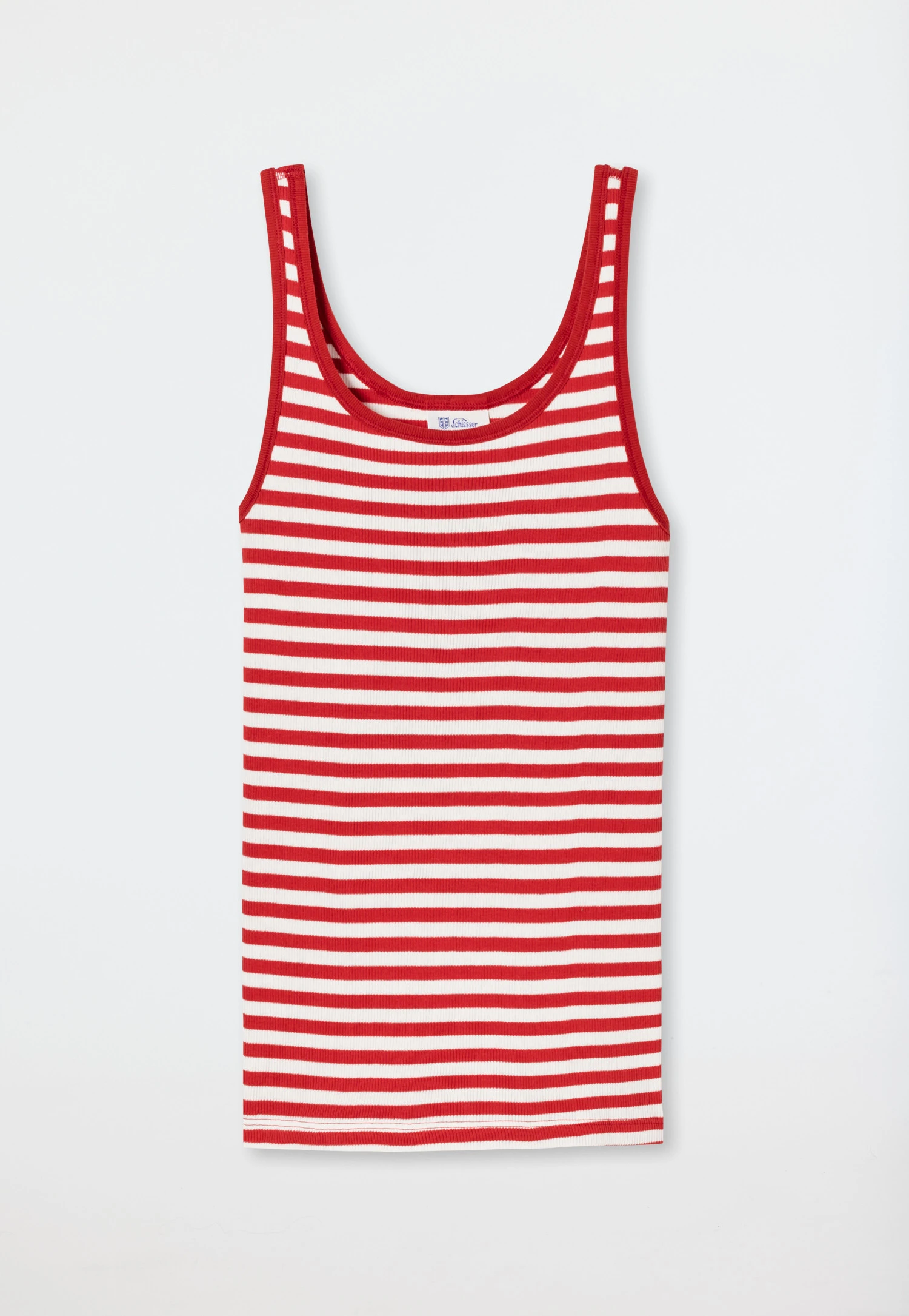 Hello, I’m Greta, your beloved cult classic. I was born as a tank top with a distinctive ribbed fabric back in 1951. My character is the same, but now you get to enjoy a modern interpretation. The stripes underline your distinctive style. I’m also sustainable: my traditional double rib is made of 100% fine organic cotton. Skin-friendly, resource-saving and as soft as always. I’m not any piece of clothing – I’m a cult classic.