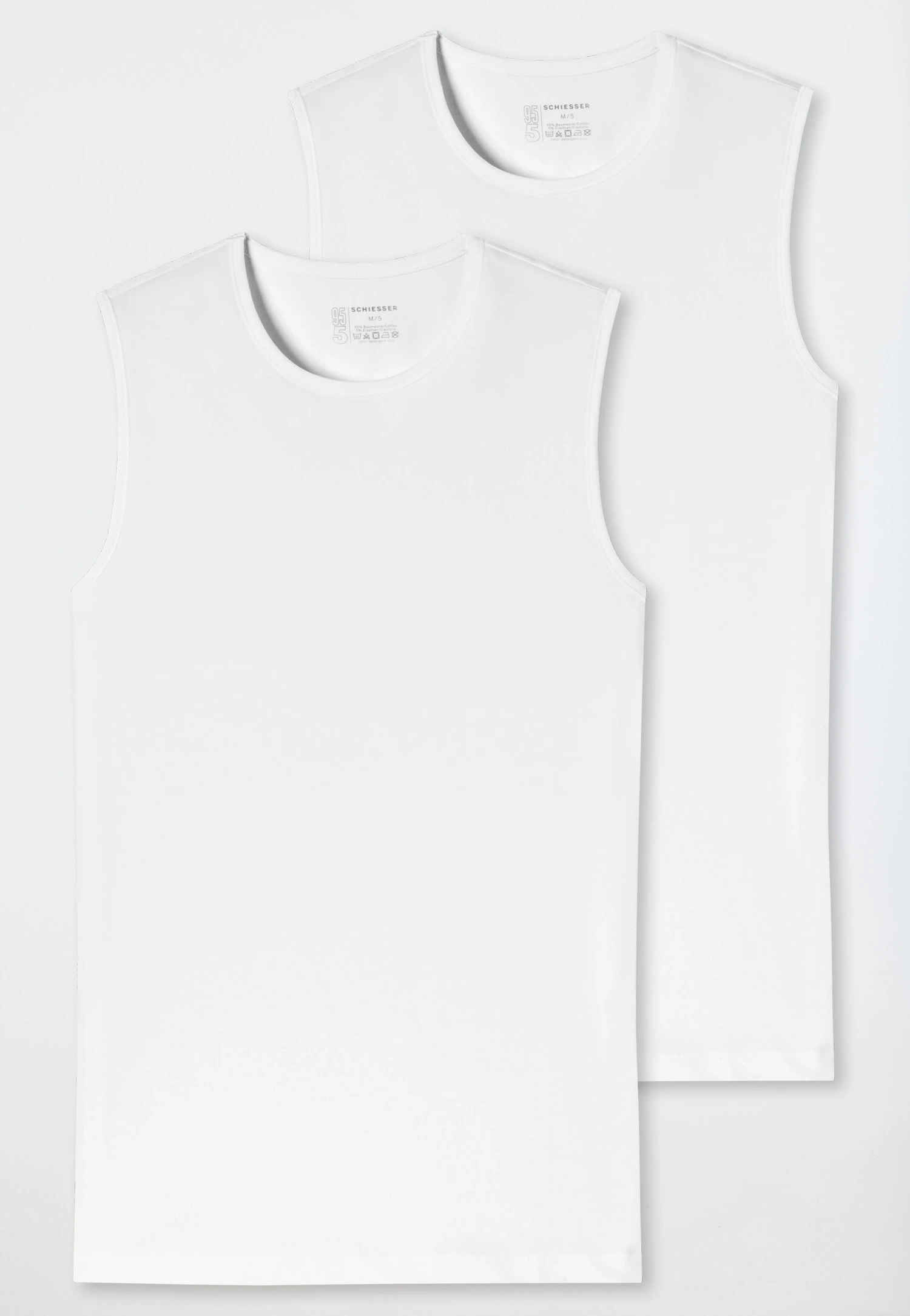 These men’s tank tops are an unbeatable duo as a well-priced double pack. The material, made of 95% natural organic cotton and 5% elastane, impresses with its first-class wearing comfort in everyday life and feels particularly pleasant on the skin. Offering a perfect fit thanks to the comfortable round neckline and the usual top SCHIESSER quality, this simple multipack will win you over everyone who appreciates uncomplicated undergarments.