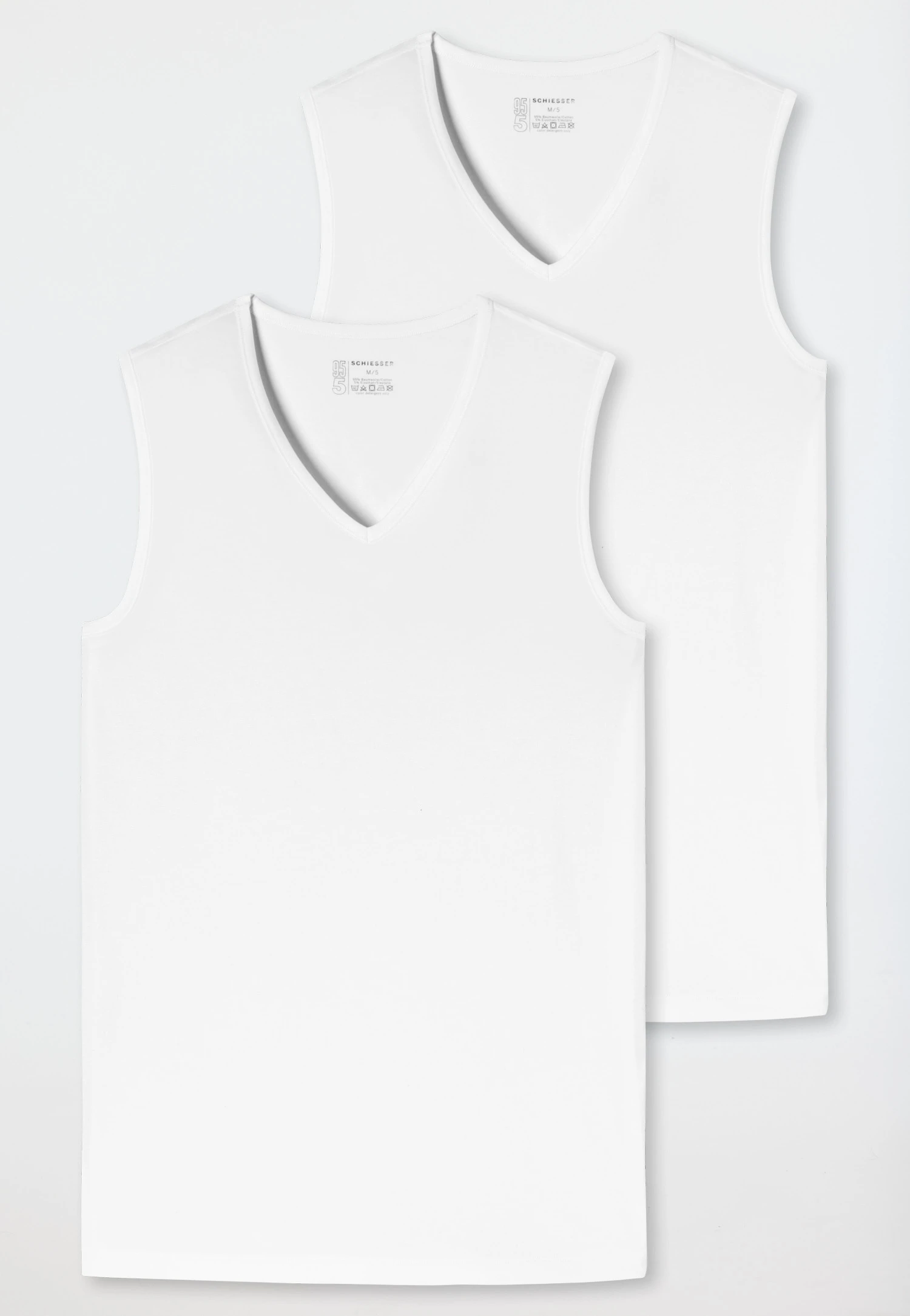 These men’s tank tops are an unbeatable duo as a well-priced double pack. The material made of 95% natural organic cotton and 5% spandex impresses with its extra high level comfort and feels particularly pleasant on the skin. Thanks to the practical, deep V-neck, these undershirts can also be worn worry-free under a business shirt. In short: a practical multi-pack in the best SCHIESSER quality, as usual.
