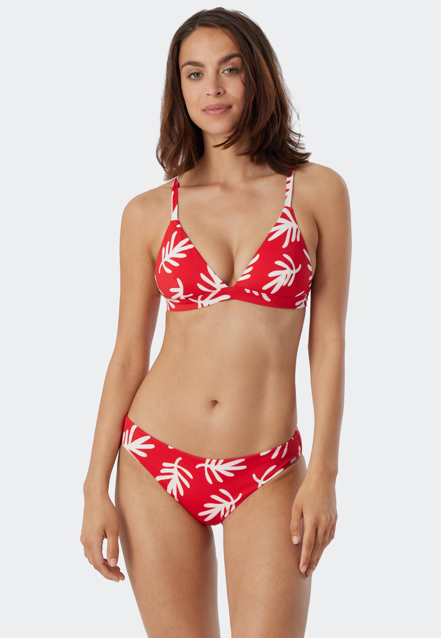 Do you like flexibility? Then how about this beautiful triangle bikini top for women? It’s a real eye-catcher with its fantastic coral design! The top can be altered to suit your individual style: The soft cups can be removed, and the adjustable straps can be worn crossed, straight or as a halter neck, depending on your preference. The soft material is sustainable thanks to its recycled microfiber content. Pair it with the matching panties and your beach look in the best SCHIESSER quality is ready to go!