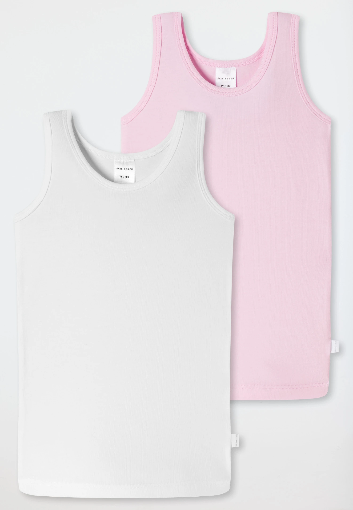Children’s underwear in a double pack: these two undershirts from the popular SCHIESSER “95/5” series are just the thing for happy girls who have a lot planned! Because stretchy single jersey, made of 95% natural, soft organic cotton and 5% spandex, not only feels incredibly soft on the skin; it also puts up with all kinds of fun things – without pinching, of course, but in best SCHIESSER quality!