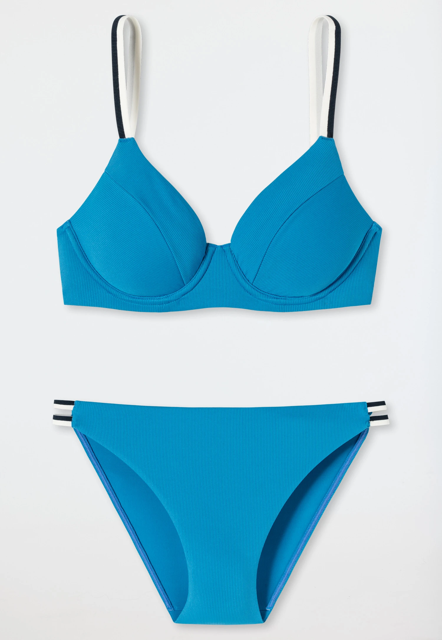 - aquarium-colored lined underwire bikini set for women in a fashionable ribbed look