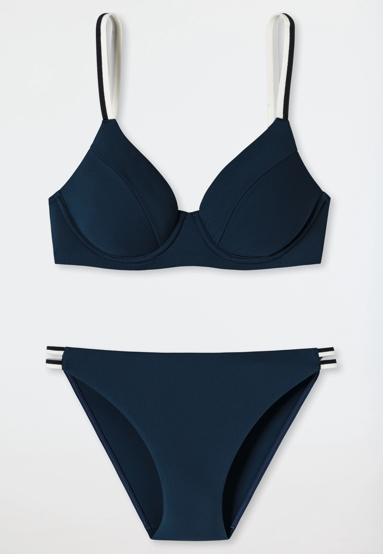 - dark blue lined underwire bikini set for women in a fashionable ribbed look
