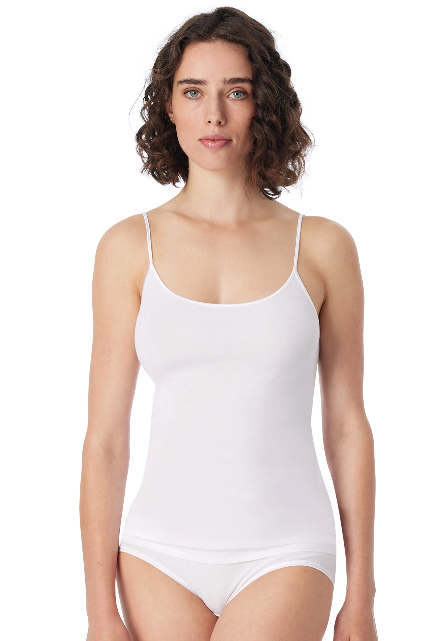 Luxurious basics: This white spaghetti top from the SCHIESSER line “Luxury” indulges sophisticated ladies with a wonderfully soft material in a feminine look. Silkily shimmering straps give the undershirt a very special character, which can be felt gently and extraordinarily light on the skin in 100% super combed maco cotton in combination with the extra flat seamless edgings. A particularly fine top in first-class SCHIESSER quality.